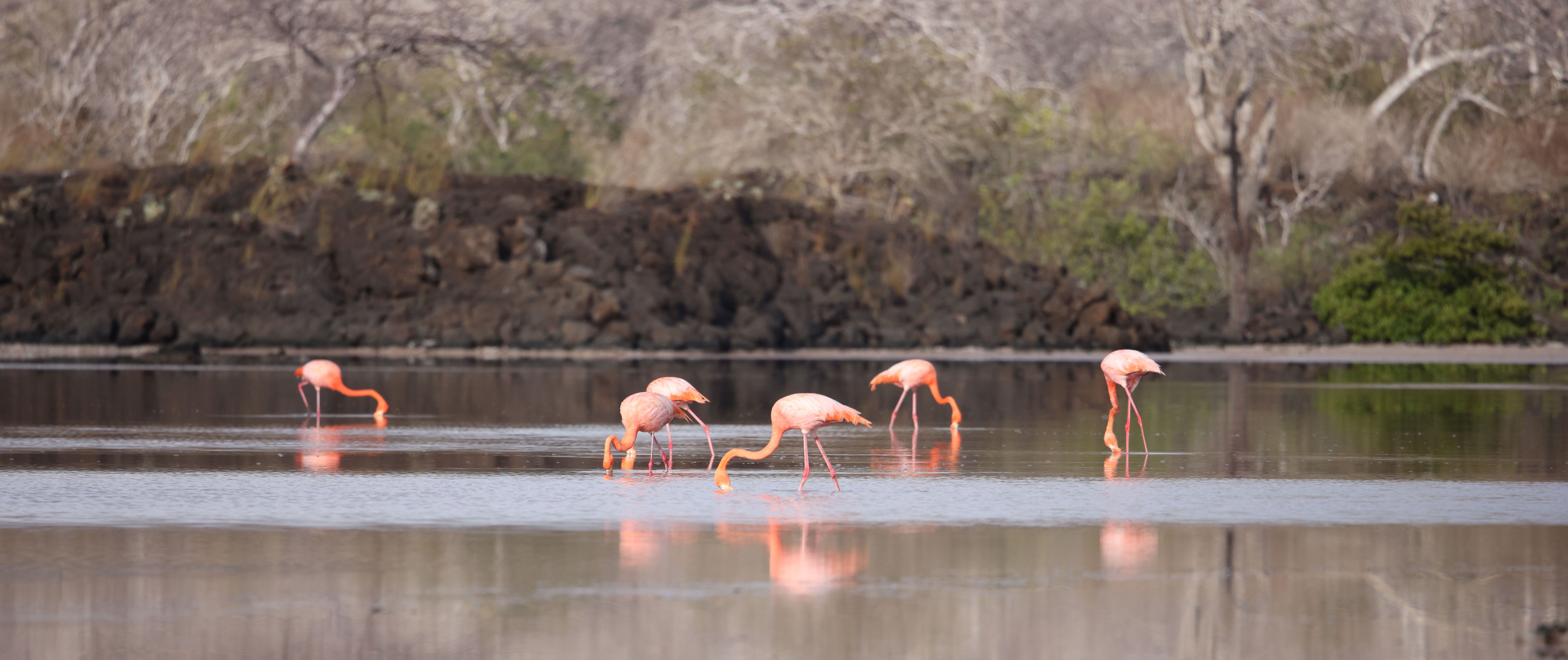 Today, we explored different sites on Floreana Island. In the morning, we went ashore to Punta Cormorant and had a great time observing dancing blue-footed boobies, feeding American flamingos, various species of finches, and green sea turtles.