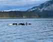 Cruising throughout the night, we awoke to the sheer granite walls of Endicott Arm rising thousands of feet above our heads. Clouds filled the sky beneath the peaks of the surrounding mountains in the fjord, more appearing as we approached Dawes Glacier. We maneuvered the ship through an open path in the ice to the glacial face. Our guests were able to spend at least an hour at the face of the gorgeous glacier. We got as close as is legally possible. The sun was shining behind the glowing blue ice as we crossed back and forth. Pupping season fully underway, we were able to view mother harbor seals nursing their young on floating blocks of ice. Our guests were surprised by the arrival of hotel staff in Zodiacs. They were dressed as Vikings, and they gave us spiked hot cocoa.