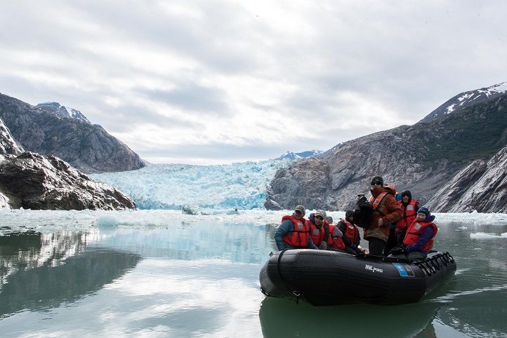 We spent today exploring the waters of the Ford’s Terror Wilderness Area, both from the expedition landing crafts in front of Dawes Glacier and, for a few brave polar plungers in the cold, icy water of Endicott Arm. The ship was a welcome sight after being out in the chilling wind and rain, making our way through the ice filled fjord to get up close to the face of the glacier in the smaller boats in the morning. We moved to slightly warmer water for the plunge in the afternoon, and then made our north towards our final destination and end of the expedition in Juneau.