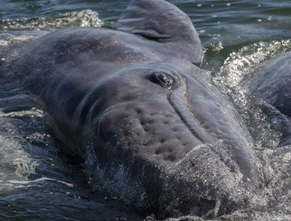 Some of our fellow guests had opted to skip the hike and stay onboard the ship as she cruised from Fortuna to Stromness, and were quite fortunate to see a small pod of Southern right whales, a rare sighting indeed.