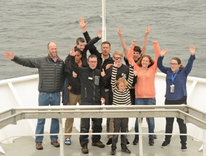 After lunch, we were treated to a spectacular show by a group of humpback whales. A calf was playing with Steller sea lions (or vice versa?) while the adults sent plumes of spray into air in all directions. It was a beautiful afternoon to be out on deck.
