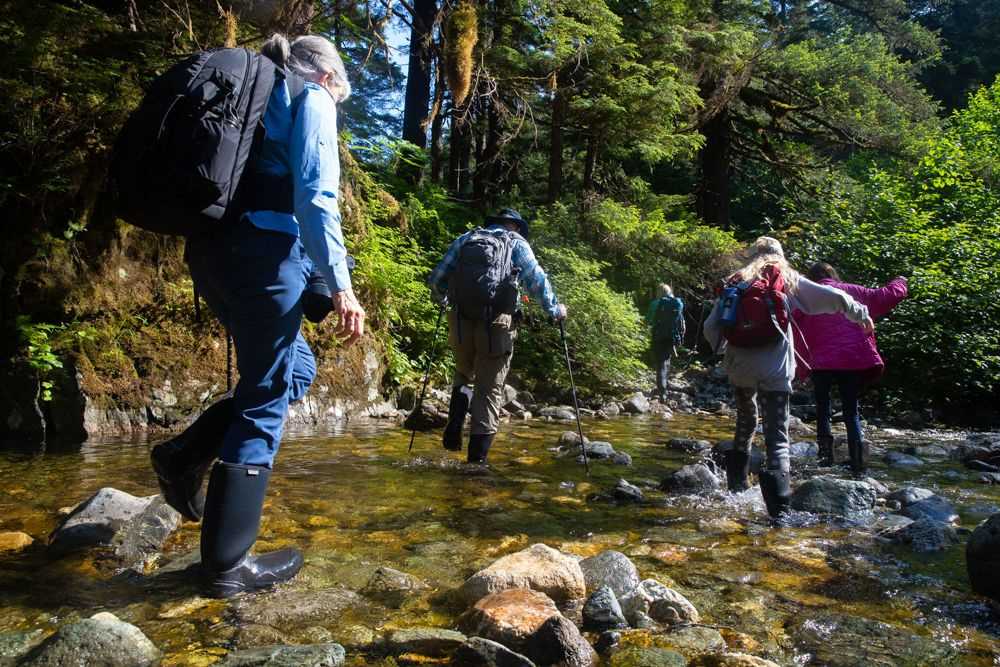 What a day! We had some more sunny weather and lovely adventures. While we slept last night, we cruised up Chatham Strait, waking upon sunrise the beautiful Icy Strait north of Chichagof Island. Our day started in the Fox Creek area, where small groups went ashore to explore the forest and the beach while others kayaked around Shaw Island. During lunch we moved north into Glacier Bay National Park, where we spent the afternoon exploring Dundas Bay on foot and by Zodiac. We had wonderful wildflowers, incredible wildlife tracks, and a number of sea otters in the bay!
