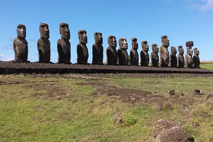 Our expedition to Polynesia began in Easter Island, also known as Rapa Nui (broad paddle) and Te Pito Te Henua (navel of the world). We spent three very fulfilling days exploring Easter Island, and in this time were able to see all the most important sites. This is perhaps the most isolated habitable land in the world, located 3,790 km (2,350 mi) west from Chile and 2,250 km (1400 mi) east from Pitcairn, the two nearest habitations. The island is triangular in shape, with an extinct volcano at each corner. It is relatively small and measures only 23 km (14 mi) E‑W by 11 km (7 mi) N‑S, covering about 166 sq km (64 sq mi) in area. However, the volcanic Plateau of Easter Island is much larger and measures some 250 km (150 mi) in circumference. The surrounding waters are more than 3,000 meters (10,000 ft) deep in some places. Easter Island was colonized by Polynesians probably between AD 900 and 1000, according to the latest radiocarbon dates. They spoke an eastern Polynesian dialect that was related to Marquesan and Hawaiian and linguists have estimated Easter Island language has been isolated for more than a millennium. When we think of Easter Island, we think of bizarre and fascinating megalithic statuary. The giant stone statues represent deified ancestors and were once an important, actually dominating, part of the island’s culture. There are about 900 moai known to exist. The design and style of these incredible statues, or moai, evolved here in isolation and are unlike any other statues found in Polynesia (or the rest of the world, for that matter). The moai were erected facing inland in order to watch over and protect the living descendants with manna provided by the departed ancestors represented by the statues. Apart from some of the unfinished moai still situated at the main quarry, all of them had been knocked down (some by earthquakes, but most by rival clans) by the end of the 19th century. Jacob Roggeveen was the first European to sight Rapa Nui. This occurred on Easter Sunday, 1722, which is why we know it as Easter Island. Therefore, the written history of this fascinating lace is only about three centuries. The rest of our knowledge has come from careful archaeological research and local oral traditions. We missed Easter day on Easter Island by just two days. Here is a recap of our experiences at Easter Island. Wednesday: After checking into our rooms at the beautiful Hangaroa Eco Village and Spa, we headed out to the restored Ahu Tahai for our first close-up views of the famed megaliths. This monument includes five moai, as well as a few isolated moai and some house foundations. Most of us opted to walk back to the hotel in the evening, which gave the chance to enjoy some free time and check out the town. Thursday: Today, we concentrated our efforts in the eastern region of the island. Most of us opted to go out to Tongariki, the site of the largest Ahu on the island, in order to watch the sunrise. It was as beautiful as we had hoped. This was the site of a very large and extensive village at one time, and the restored Ahu contains 15 massive moai. A little later, everyone made their way to Rano Raraku, the most famous place on Easter Island. This is the quarry site where nearly all the moai found throughout the island were carved out of the western slope of the volcano. Many of the moai were abandoned before their carving was complete or before they were moved to the final sites. Numerous statues remain upright, mostly buried in the shifting volcanic ash sands, so that only their heads are exposed. A pathway system allowed us to view these wonderful megaliths up close and conditions were perfect for photography. We all then went over to nearby Tongariki (where many of us experienced the sunrise a few hours earlier) for more time to explore and learn about the human aspect of the site. The site was restored in the 1990s by some of those guiding us, notably Claudio, Patricia, and Edmundo. A barbecue lunch was offered at an old coconut plantation near Anakena Beach, the nicest white sand beach on the island, where we also had time to view more moai and swim in the protected waters. From here, some of us went by bus to nearby Ovahe and then hiked overland to Ahu Te Pito Kura. Friday: Today, we explored the southwestern area. For most of us, this started at Vinapu, a ceremonial complex with ahus and moai of different ages, including one stone monument very reminiscent of Incan stonework in Peru. Here the stones are closely-fitted rectangular shapes, which look very much like some of the ancient structures in the northern Andes of South America. We also visited the Orongo Caldera, where we learned about the amazing Birdman Cult. a yearly contest that pitted champions of the various clans against each other in a competition to obtain the first sooty tern egg of the season. The winning clan chief (and his people) enjoyed all kinds of benefits for the ensuing year, until the next competition. We saw the houses in which the important people lived during these events, and could easily understand the dangers involved with the competition when we looked at the little offshore islets where the competitors challenged each other. After lunch, we visited Ahu Akivi, the first restored site, which was overseen in the 1960s by Professor Bill Mulloy of the University of Wyoming. This operation set the standard for all ensuing restorations. We also had the chance to visit Puna Pau, where the red top knots that adorned the completed moai were quarried and shaped. And, some of us opted to explore the Ana Te Pahu lava tubes. However, only a few people actually went far enough inside the cave to climb out a different access point. In the late afternoon, we arrived back at Hangaroa and were met by Zodiacs, which transferred us onto National Geographic Orion, which is to be our home for the next couple weeks.