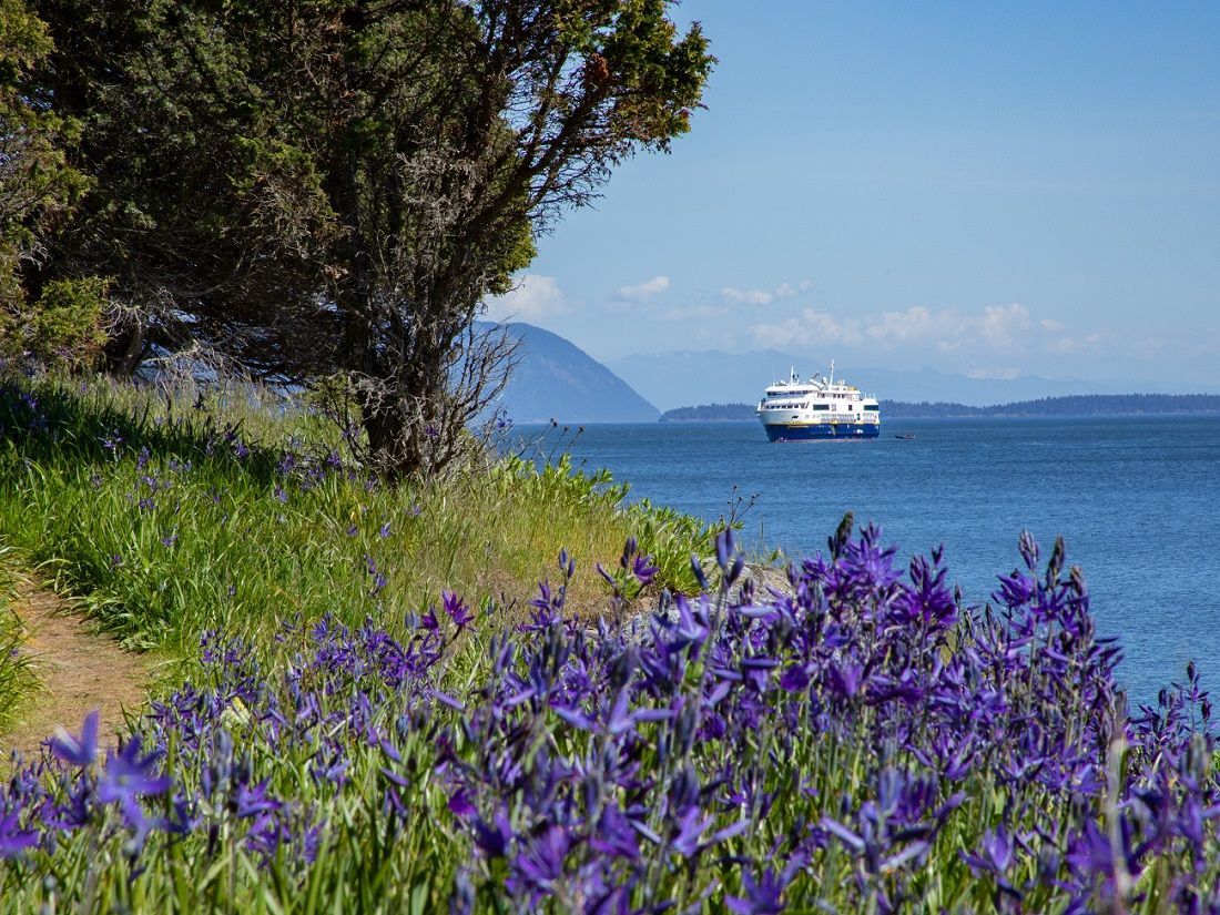 We cruised for a while through calm waters and past tree-covered mountains that met the sea. At breakfast time, we found ourselves caught in the Bella Bella light and we went out on the bow to capture the lovely sunlight and reflection on the blue water. After enjoying a hearty breakfast, we continued cruising through Seaforth Channel, past the Ivory Island Lighthouse, on into Milbanke Sound, past forested mountainsides of hemlock, Sitka spruce, and western red cedar. An occasional gull accompanied the ship as we sailed along, and more phalaropes sped by.