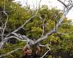 One of the highlights of the hike was finding an ancient fox trap (Figure B). This very simple, but effective deadfall trap consisted of a roughly square-shaped, wooden slat structure with several heavy rocks set atop it. A two piece prong propped up one end of the trap with a bait tied to it. When a fox pulled on the bait, the prop separated and the heavy structure would drop on the hapless fox, killing it quickly. This particular trap had been abandoned long ago and was partly overgrown by moss and lichens. However, the wooden slats were still intact since there is little in the way of wood destroying microbes and fungi (and certainly no termites!) in this cold, dry habitat. We could clearly see the old-styled forged, square-headed nails holding the wooden pieces together. From here, we sailed out through Sørgattet Strait and began our long voyage westward toward Greenland.