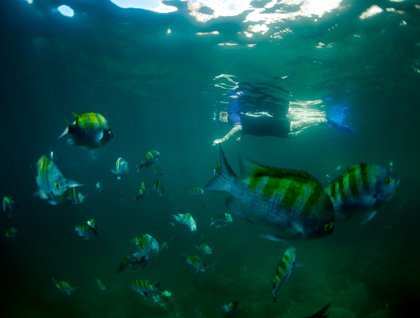 After breakfast we have plans for deepwater activities and we disembark on the beautiful sandy beach of this bay. The snorkeling is close to Gardner islet and the activity of the tropical and reef fish is great. The visibility seems to be affected by the swell that has lifted sediment at the bottom of the ocean. Nevertheless, the experience is fantastic and all our explorers feel satisfied by this very first encounter with such a great activity.