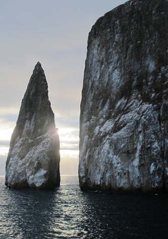For the afternoon we are anchored at the most westerly point of Española. It is called Punta Suarez, a place that became popular and well known years ago. The intense action of birds nesting, colorful marine iguanas, and the seasonal presence of the largest bird you expect to see on these islands, the waved albatross, kept the atmosphere of the ship high.