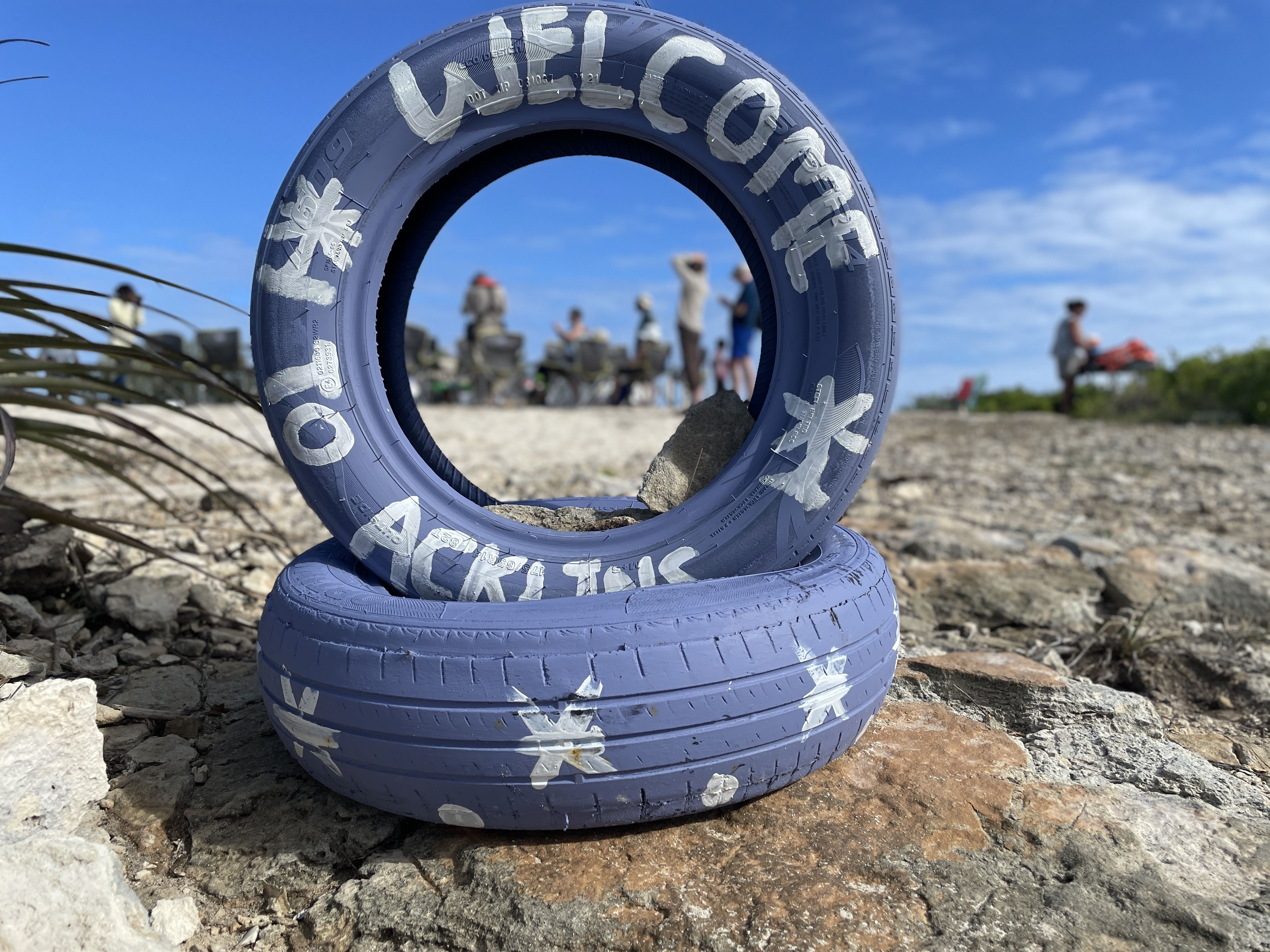 Photo caption and credit: A colorful Galapagos marine iguana warms up under the sun with a sea lion in the background. Photo by Gilda Gonzalez