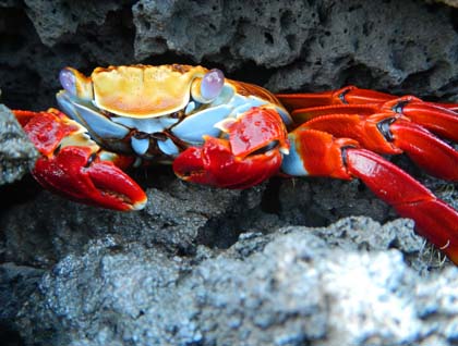 Due to its isolation, Genovesa is considered the jewel of the Galápagos Islands. This unique place has a very fragile ecosystem and it is very important to practice sustainable tourism. Thus, to be able to enjoy Mother Nature, later in the morning, our outing took place on Prince Phillip’s Steps. From the top of the island, we observed the magnitude of the caldera of the ancient shield volcano. As we walked through a Palo Santo forest, Nazca boobies, mockingbirds, Galápagos doves and Darwin’s finches charmed us with their sounds. The trail took us to an old rocky plain oxidized by erosion. Since the Galápagos hawk is absent on the island, short-eared owls have become diurnal and prey on petrels. Storm petrels were extremely abundant on the ancient lava field and we were astonished by their bizarre behavior. Because they fly during daytime to avoid predators, they only return to their nest holes at night. The perfect camouflage of the short-eared owls’ plumage against the brown rocks surprised many petrels landing on the lava field.