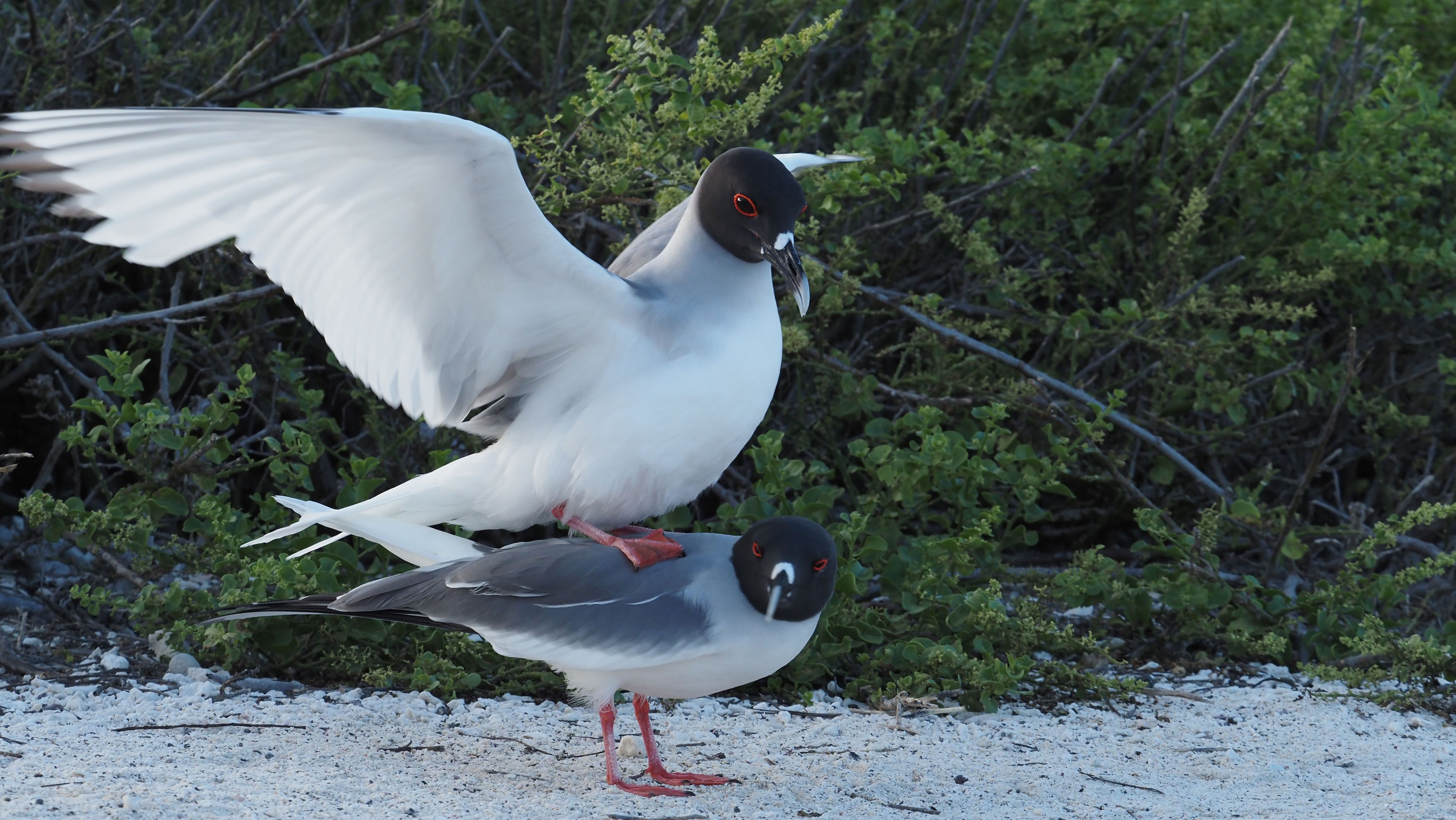 We were then ready to start our next adventure, which was a wet landing on a white coralline beach inside Darwin Bay. The beach was named by a celebrity visitor, William Beebe, in honor of Charles Darwin, the great naturalist who redirected human thought. At high tide, we walked over a platform, surrounded by birds of all kinds and their chicks. We observed the birds’ behaviors and colors. We were moved to see so many active seabirds. The parents took care of the juveniles, hoping one day they can fend for themselves. We were also happy to see gulls mating.