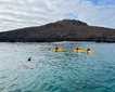 Early in the morning, we visited Prince Philip’s Steps. We walked through a forest of incense trees and spotted lots of wildlife. The geology is interesting with pyroclastic material everywhere, which has formed hundreds of caves. These caves are ideal spots for nesting petrels, owls, and red-billed tropicbirds. We went paddleboarding and kayaking along the majestic ring of this very old crater, which is now a bay where ships anchor. We enjoyed snorkeling and swimming with mobulas, spotted rays, and hundreds of different types of fish. We had a great surprise when we spotted a big Galapagos shark and several hammerhead sharks. What an incredible experience with an amazing grand finale!