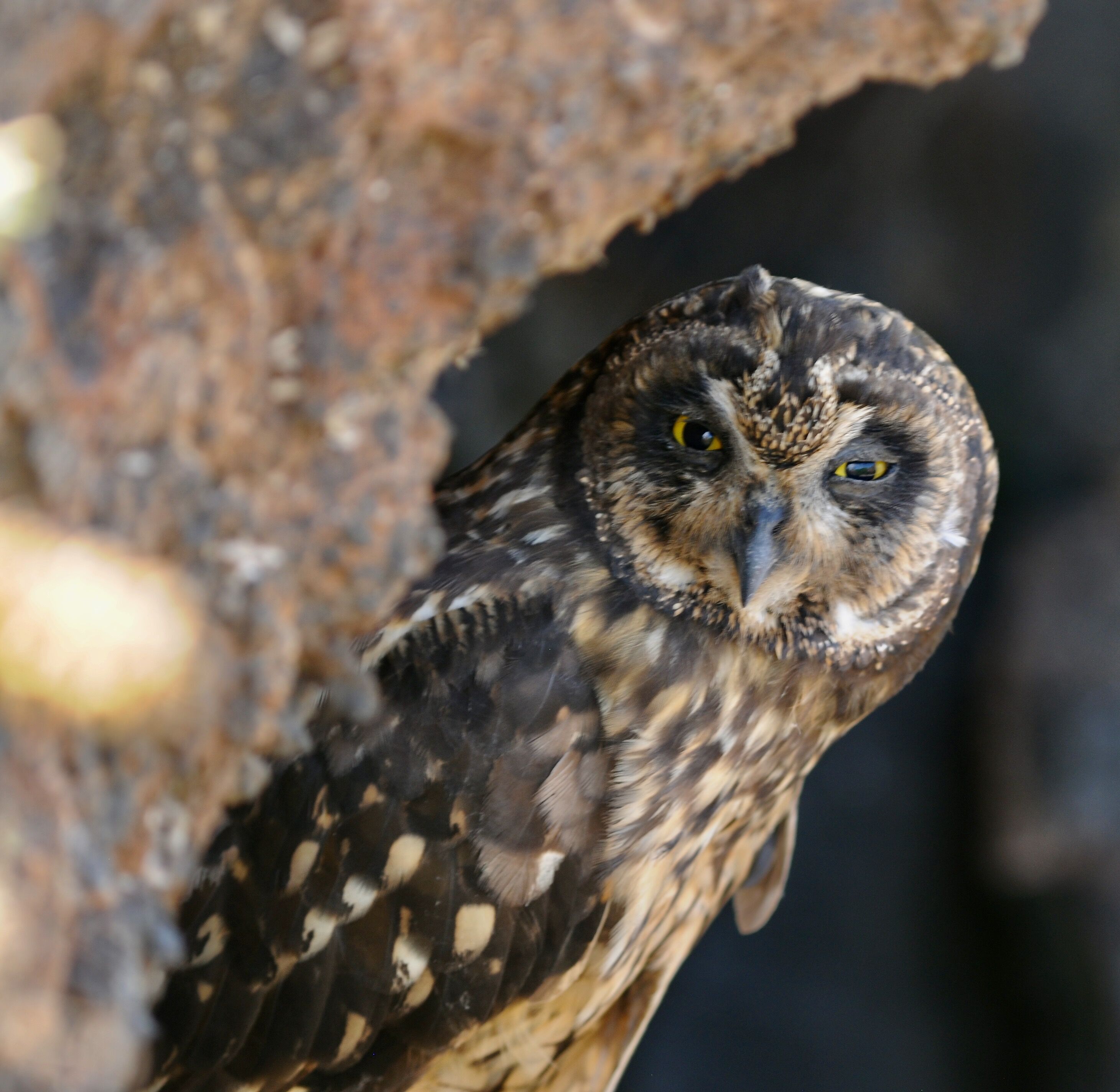 Today we visited Genovesa Island, and we started our morning walk exploration at El Barranco where we witnessed the most incredible shows of wildlife along with a unique geological landscape. At some point, we looked inside a crevice and suddenly a short-eared owl stuck its delicate head outside of the crack where it was patiently awaiting the arrival of a storm petrel.