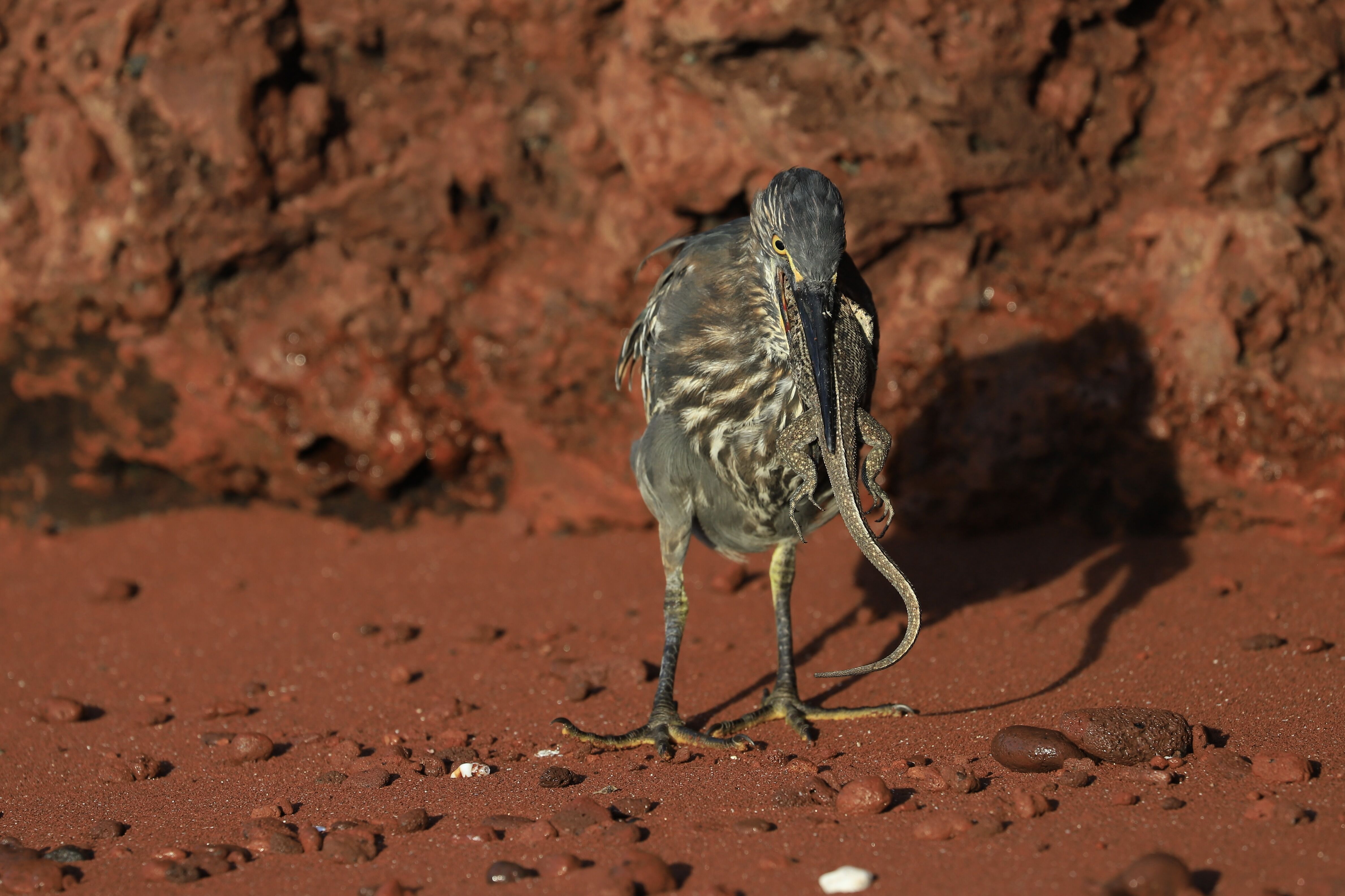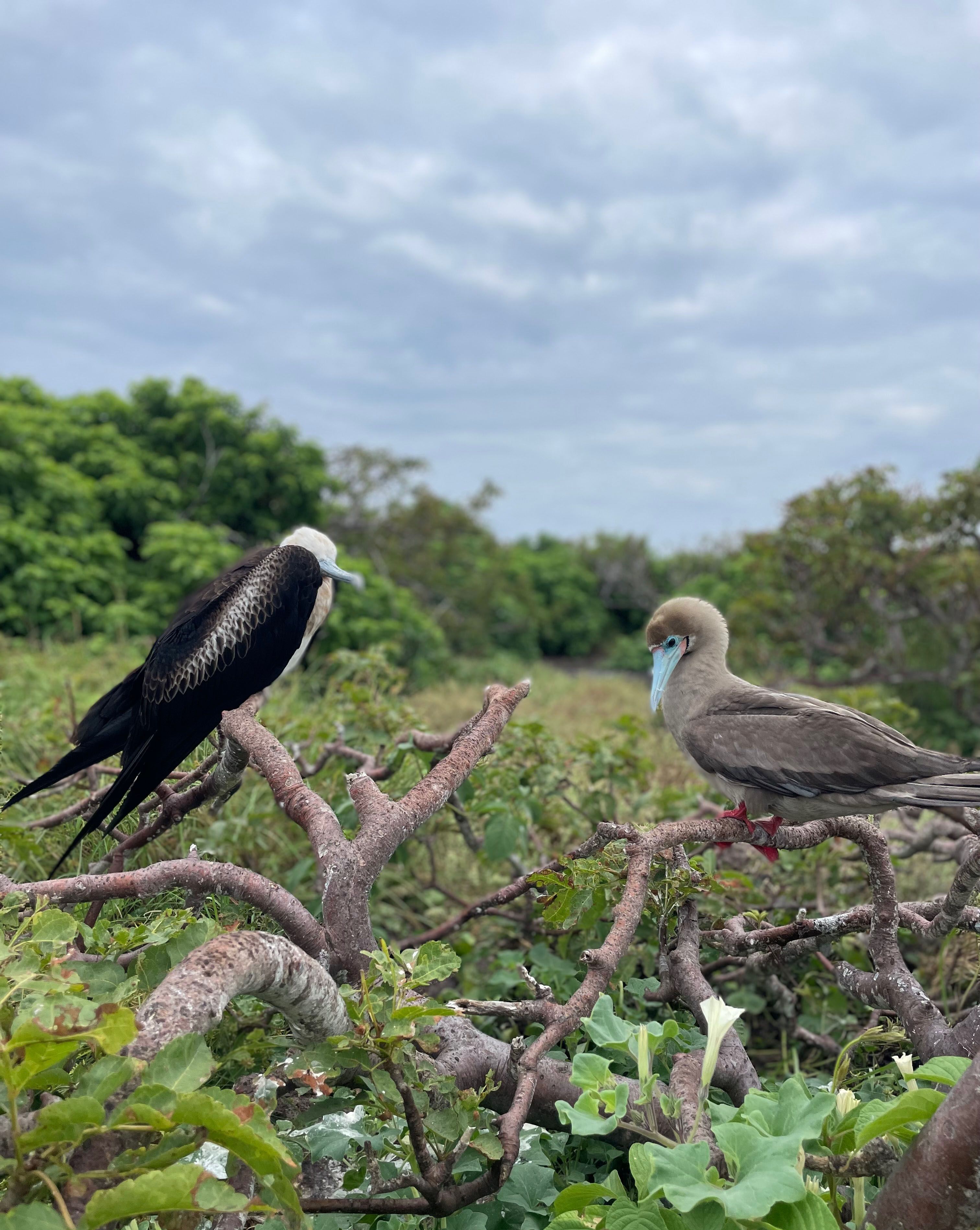 We spent the day on the beautiful Genovesa Island. This place is outstanding, especially for those who love seabirds. Red-footed boobies and Nazca boobies were abundant along the trails. We observed plenty of juvenile frigatebirds and even a few males displaying a fully inflated red pouch.