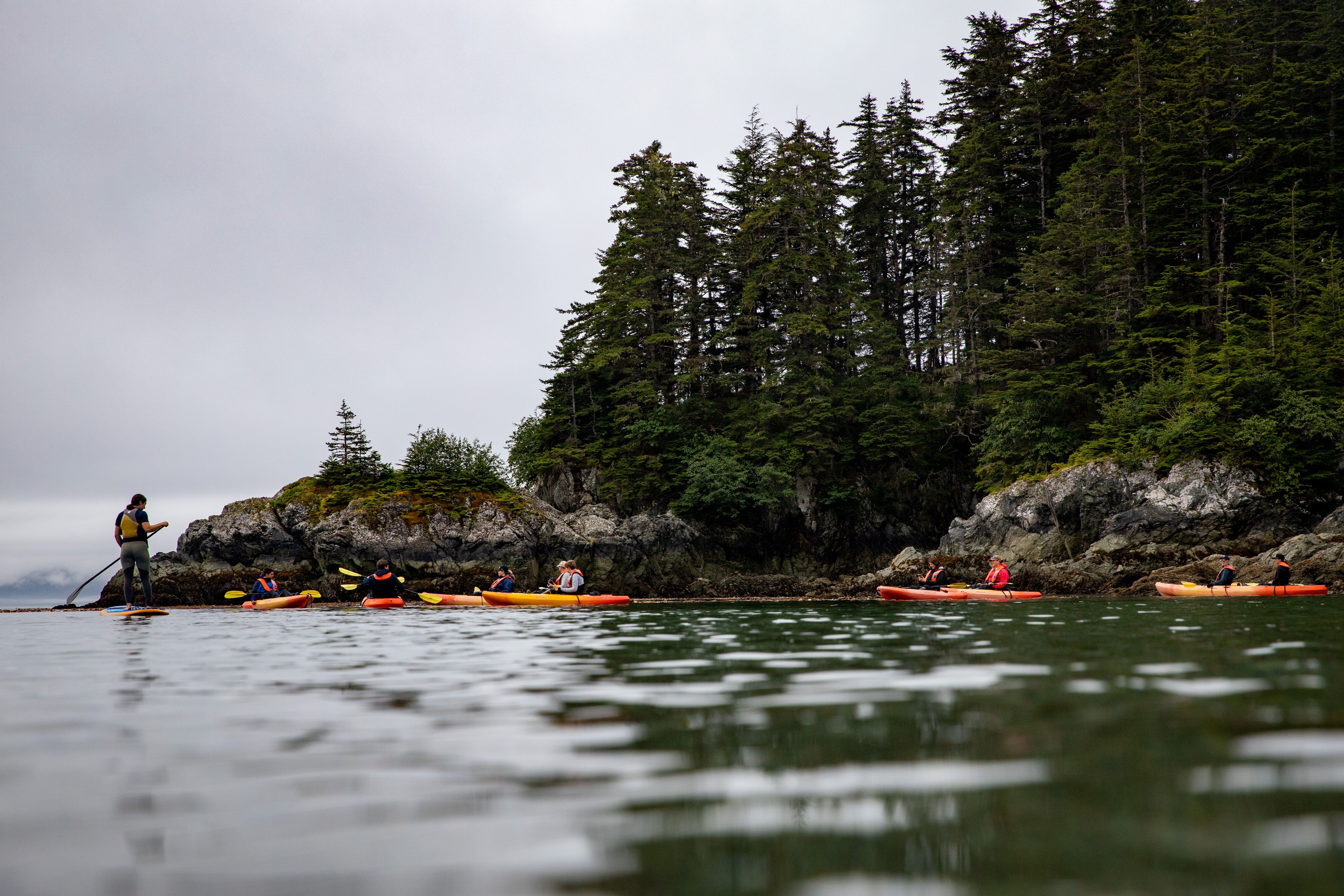 As we made our way to our anchorage off George Island this morning, we awoke to a beautiful low mist moving in and out of the small islands of Icy Strait and Cross Sound. The open Pacific beckoned to the west, and we felt the swell of the ocean for the first time on our trip. After landing on George Island, kayakers and stand-up paddleboarders took to the water as hikers and photo walkers explored the land. A short reposition during lunch landed us a mere two miles away at Hobbit Hole. We were ready to explore the Inian Islands on Zodiac cruises. Sea otters, sea lions, bald eagles, and other types of wildlife were waiting for us on the rocky shores and in the churning waters. It was a lovely day to explore the northernmost entrance to the Inside Passage of Southeast Alaska!