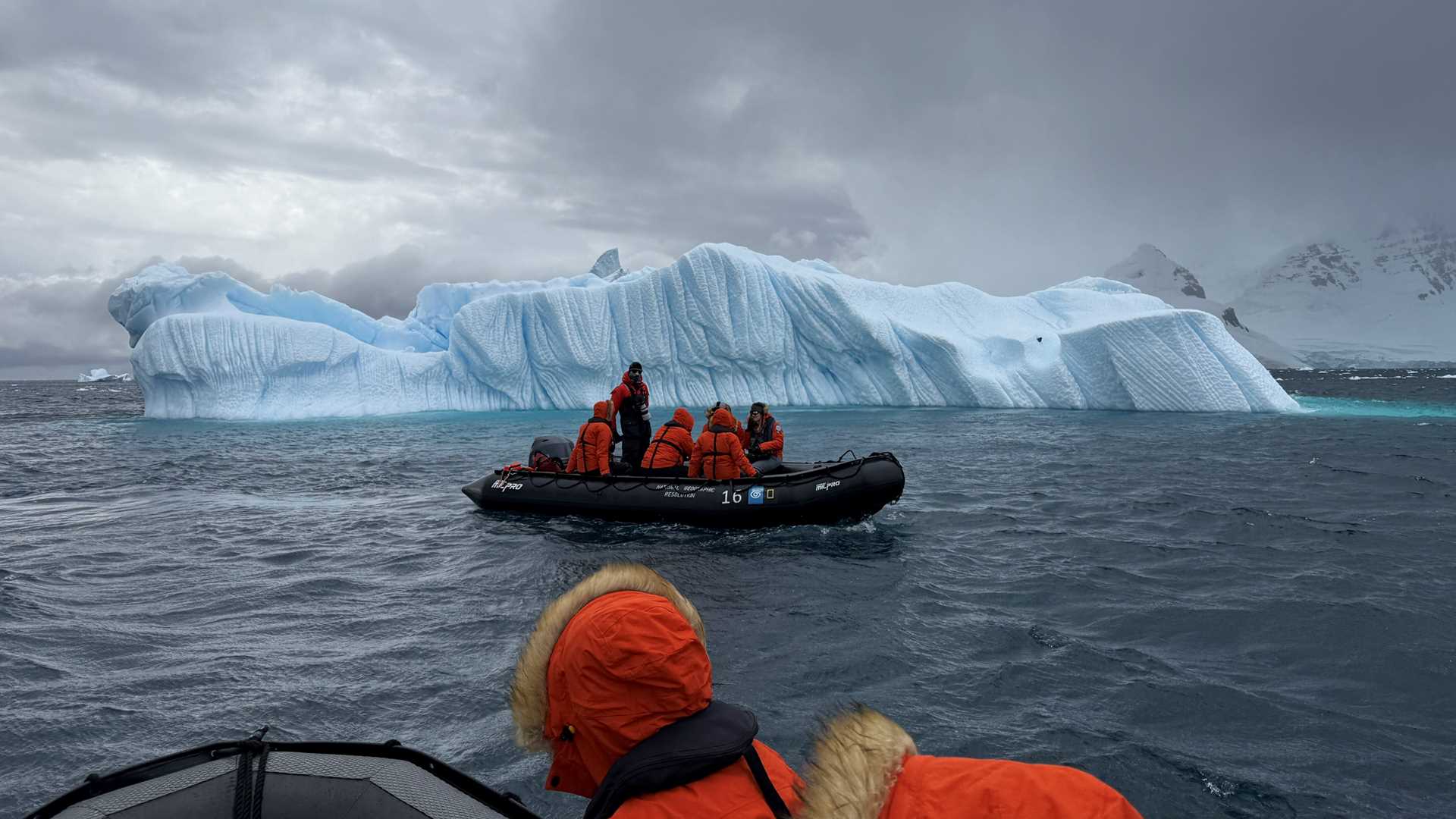 We awoke traveling south in Gerlache Strait on the west side of the Antarctic Peninsula after amazing days in the Weddell Sea with emperor penguins and tabular icebergs. We passed krill fishing vessels and humpback whales targeting the same prey. Young guests from our Global Explorers kids’ education program were treated to a tour of our Zodiac garage by Staff Captain Sam and Bosun Rocky.
