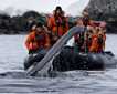 Our day began before 3:00 AM when expedition leader, Jonathan, called us to the outer decks to view killer whales. We spotted the same group earlier in the trip, but this time we observed the killer whales interacting with a humpback whale calf. We did not witness any predation event, but it was interesting to see the two species in close proximity. Too excited to return to bed, some of us stayed awake to enjoy the beautiful sunrise in Gerlache Strait.
