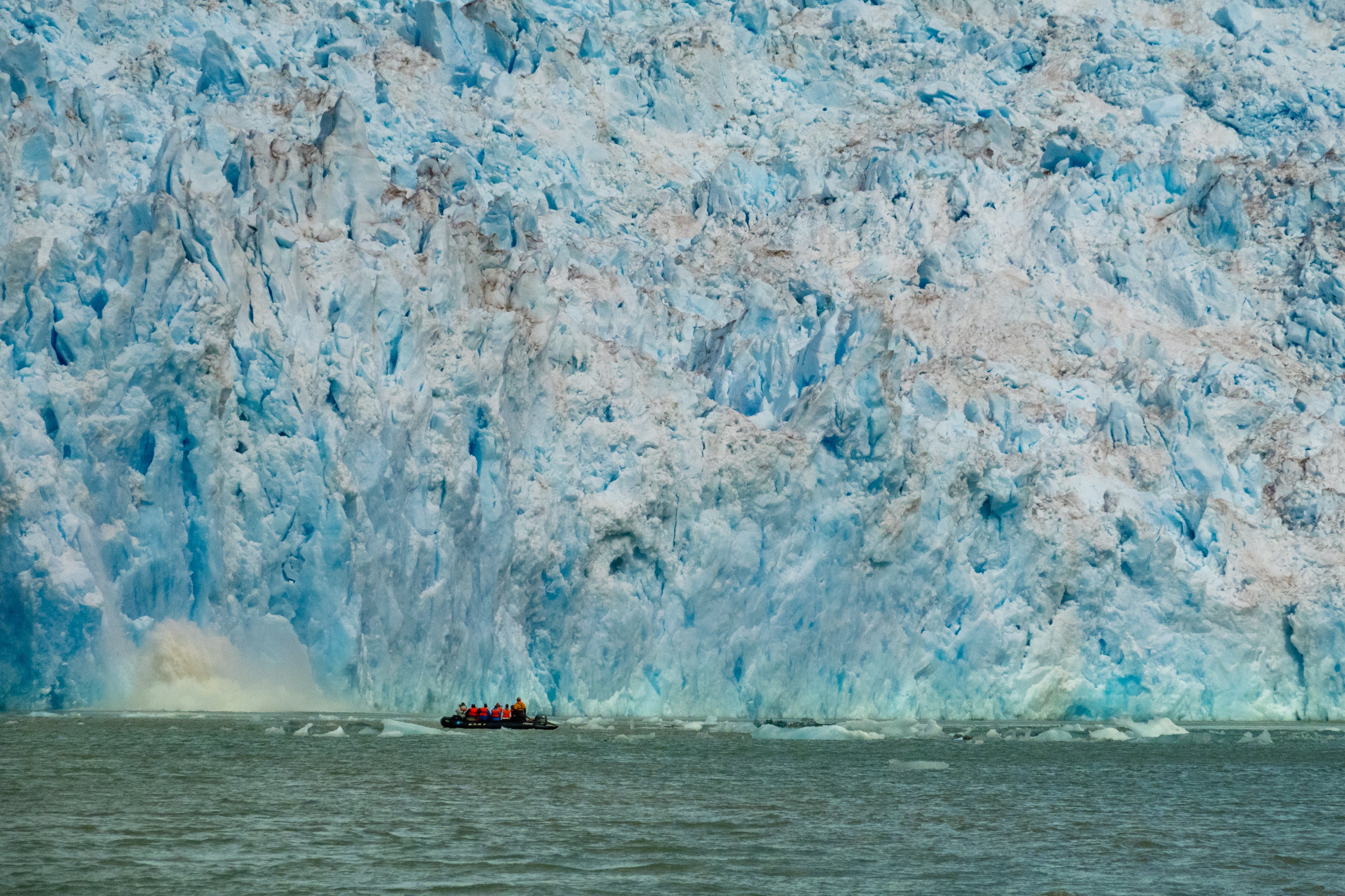 On the last full day of our voyage, we woke in Endicott Arm near the Dawes Glacier. We spent the morning enjoying Zodiac tours to the face of Dawes Glacier and watched multiple calving events. We were also able to spot several harbor seals, waterfalls, and a couple harbor porpoises on the way. After lunch we had the opportunity to participate in a polar plunge. Forty people decided to brave the frigid water for a short swim. Those of us not eager to jump into glacier water were able to watch from the bow. After the polar plunge, we warmed up on board as we started transiting towards Juneau. On the way, we stopped at a beautiful waterfall to once again admire the amazing natural beauty of Alaska. During our farewell recap, we were treated to a quick visit by a humpback whale. We ended our day with a slideshow made up of our favorite photos and memories of an amazing week on board National Geographic Quest .