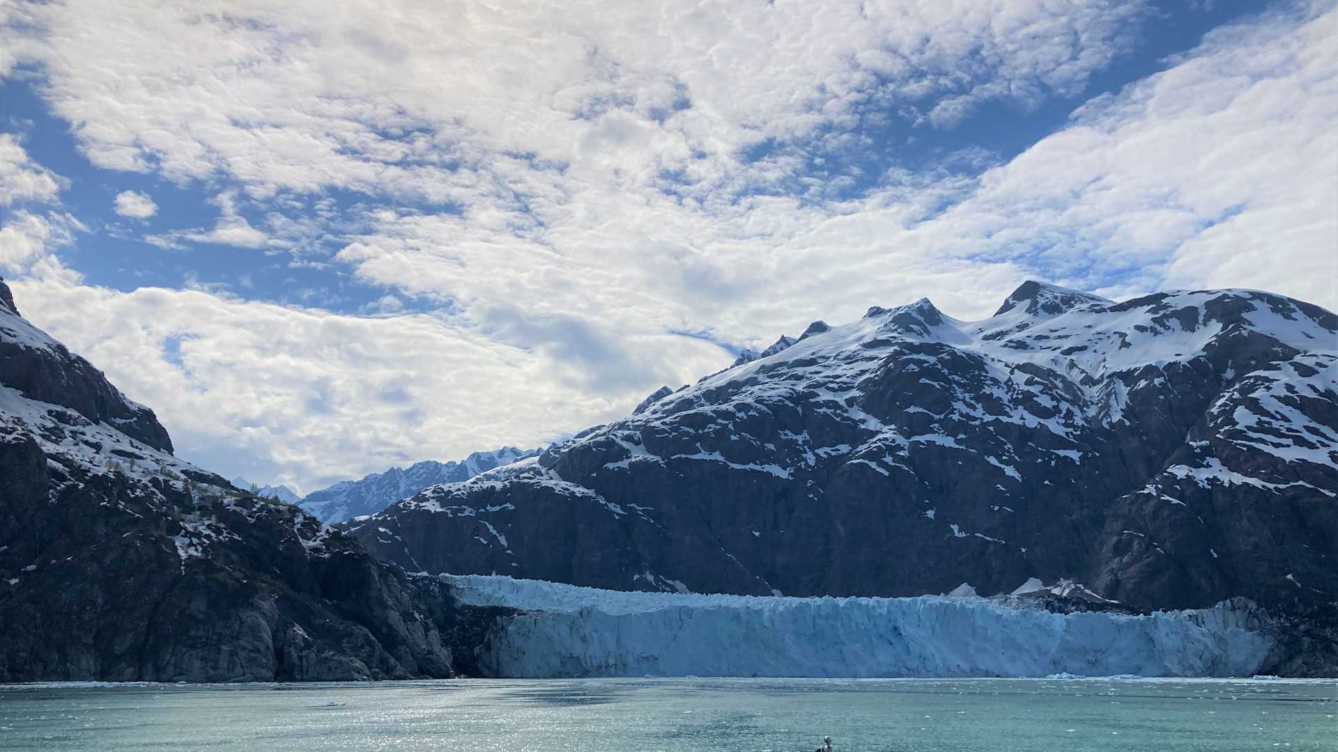 After departing Gloomy Knob, we reached the main event: the tidewater glaciers that stand sentinel at the head of Glacier Bay’s west arm. Margerie Glacier treated us to one beautiful calving event that sent water rocketing into the air along with the distinct sound known as “white thunder.”
