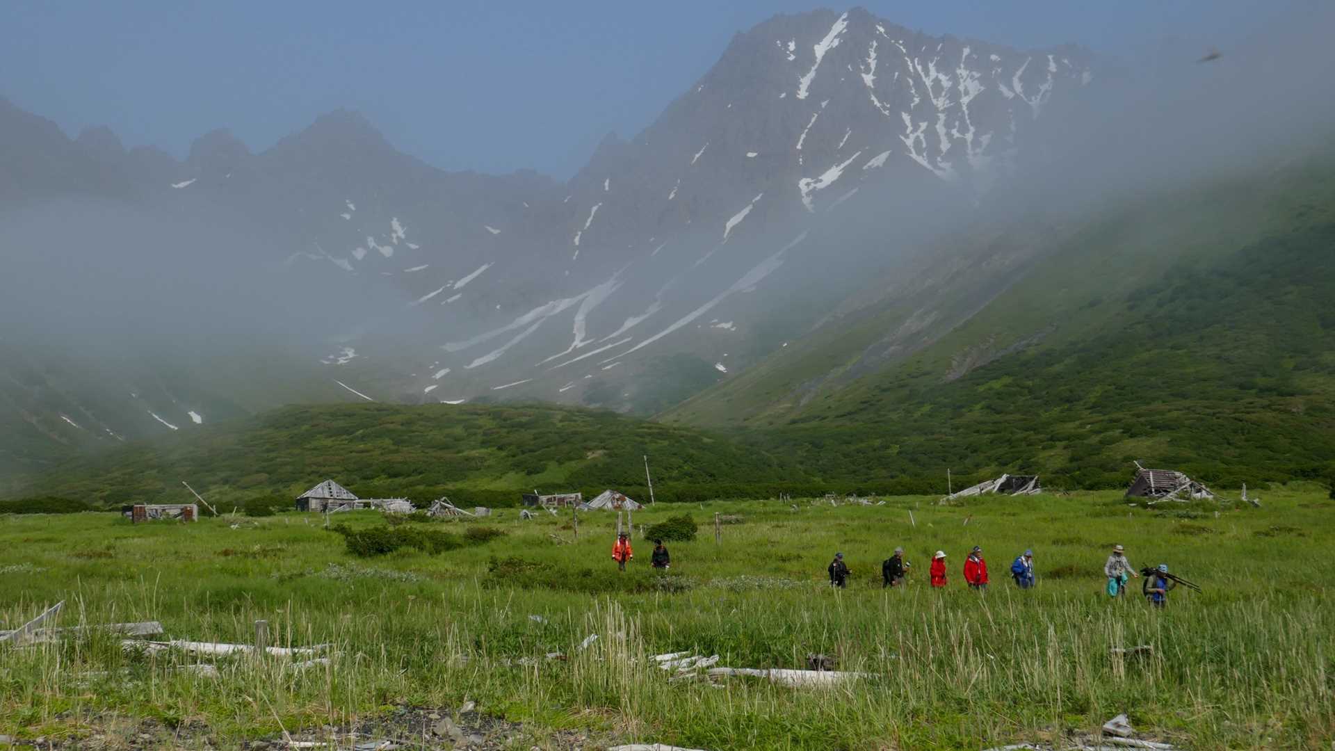 This morning National Geographic Orion entered Glubokaya Bay in the dead of fog with zero visibility. Our dedicated bridge crew sent out a Zodiac to do some soundings so that we could weave our way into the fjord and by 8:30 a.m. we made our way to the beach and had an incredible morning. Exploring the ghost town of an old village site we were quickly reminded we were in the domain of the Kamchatka brown bear (Ursus arctos beringianus). Bear trails every which where we could not help but wonder how people used to live among such a high concentration of the species.