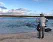 Early this morning the rugged coastline of the eastern end of South Georgia was visible below the low clouds shrouding much of the higher peaks. The plan was to arrive at a large open bay called St. Andrews soon after the sun rose. An early breakfast would allow us to get ashore for a longer period. Besides the overcast skies, the weather was not a problem, especially because the sea conditions were near perfect with only a light wind. So, people trickled to Base Camp after finishing breakfast and were transferred to the beach.