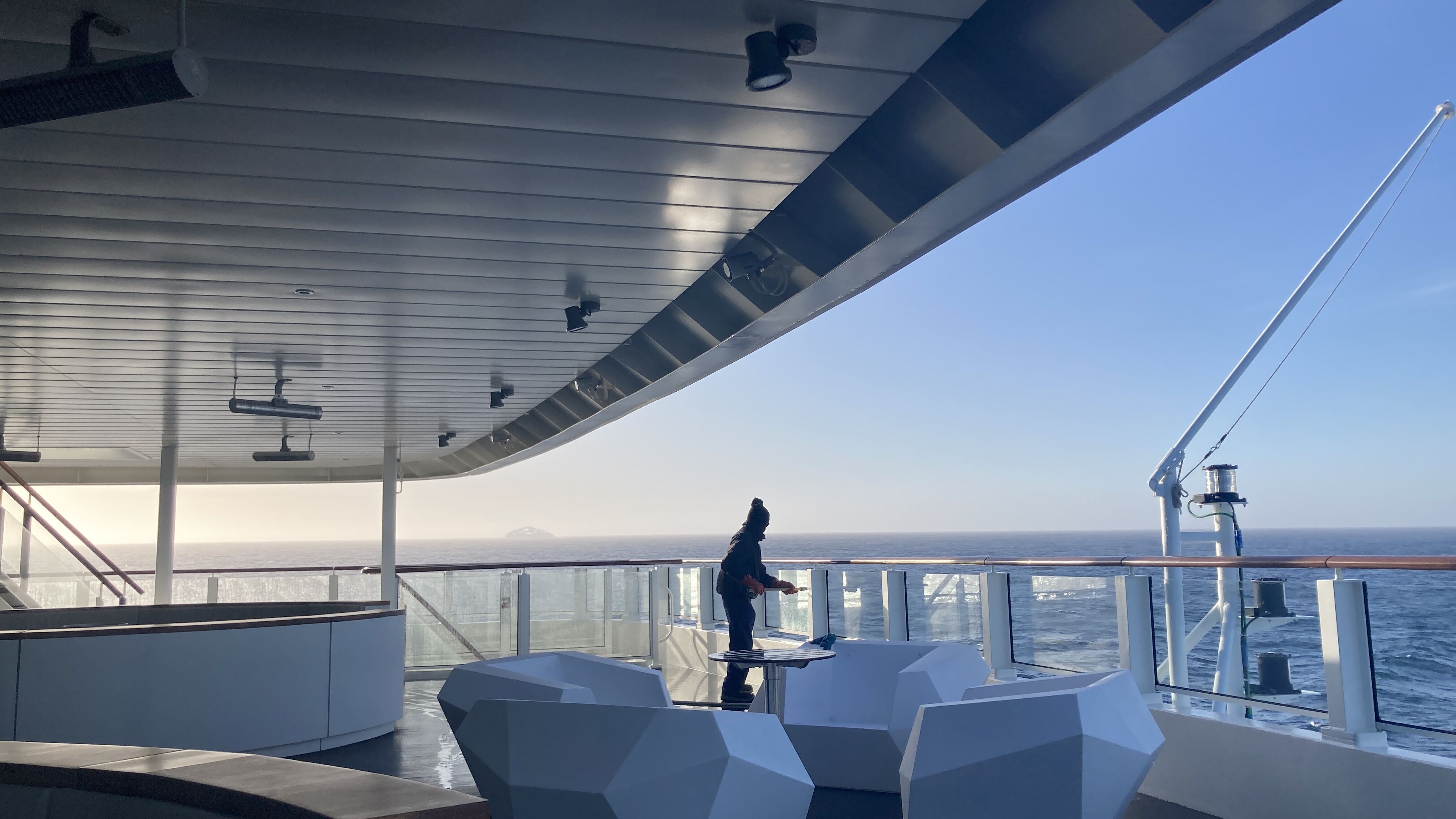 Fully refueled with lunch, we transited northwest to St Andrews Bay. On the way, some of us were lucky to see humpback whales passing by in the distance. Arriving in the bay to perfect blue skies and calm winds, we made our way up to the vantage point to observe the 150,000 breeding pairs of king penguins, the largest colony of king penguins on South Georgia. The land was carpeted with the black, white, and orange colors of the adults, along with the fluffy brown (“Oakham boys”) king penguin chicks.