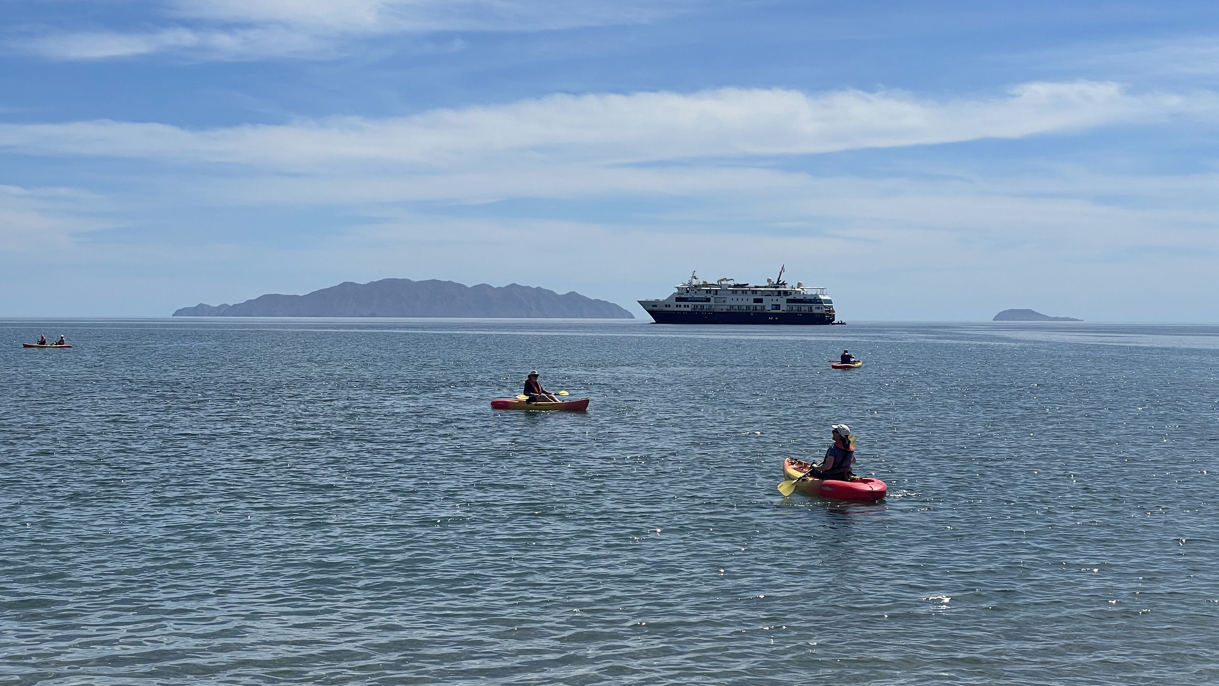 We woke up this morning to another beautiful sunrise in Baja California Sur while transiting to Cabo Falso and Land’s End. Masked boobies flew alongside National Geographic Venture as we made our way south. Humpback whales greeted us as we approached the southern tip of the Baja peninsula. Continuing past the arches at Cabo San Lucas, we transitioned from the Pacific Ocean to the Gulf of California. In those waters, we witnessed a competitive group of male humpbacks at Gorda Banks.