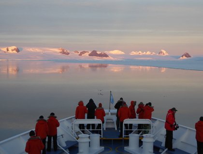 Back on board we gathered in the lounge for a talk on whales, while the ship made her way down to the tip of the peninsula and the 100-million-year old granite rocks and famous “el Arco” arch. We arrived just before for sunset—and had great views from the bow of the green flash while the hotel staff provided cocktails and appetizers. At this writing the ship is making her way around the peninsula and the winds are picking up. Time to batten down the hatches for an adventurous night ride.