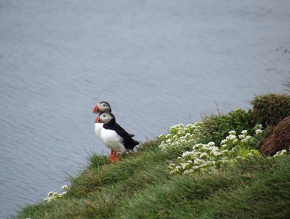 Our luck held with another beautiful day of perfect weather. And, we found a wonderful region in which to enjoy it all. Our ship reached Grimsey late last night and anchored just off the protected little harbor, giving us a quiet night to prepare for our first landing in Iceland. Right after breakfast, we went ashore and spent a few hours walking around this green and lush island with a population of about 300 people. This is an ancient fishing community with a long history of living off the sea. Fulmars and basking sharks sustained the islanders for countless generations, but in modern times (with modern fishing boats), it is the codfish that have taken over. For us, it was an excellent place to stretch our legs and enjoy the bountiful birdlife. In addition to kittiwakes and fulmars nesting on the low cliff faces, many of us encountered our first close-up puffins. There were hundreds, no thousands, of puffins rafting offshore and many others standing in front of their burrows along the upper edge of the grass-covered coastal slopes (Figure A). There’s no denying they are incredibly appealing. The inland areas were fairly swarming with arctic terns that were nesting in the fields of tall grass.