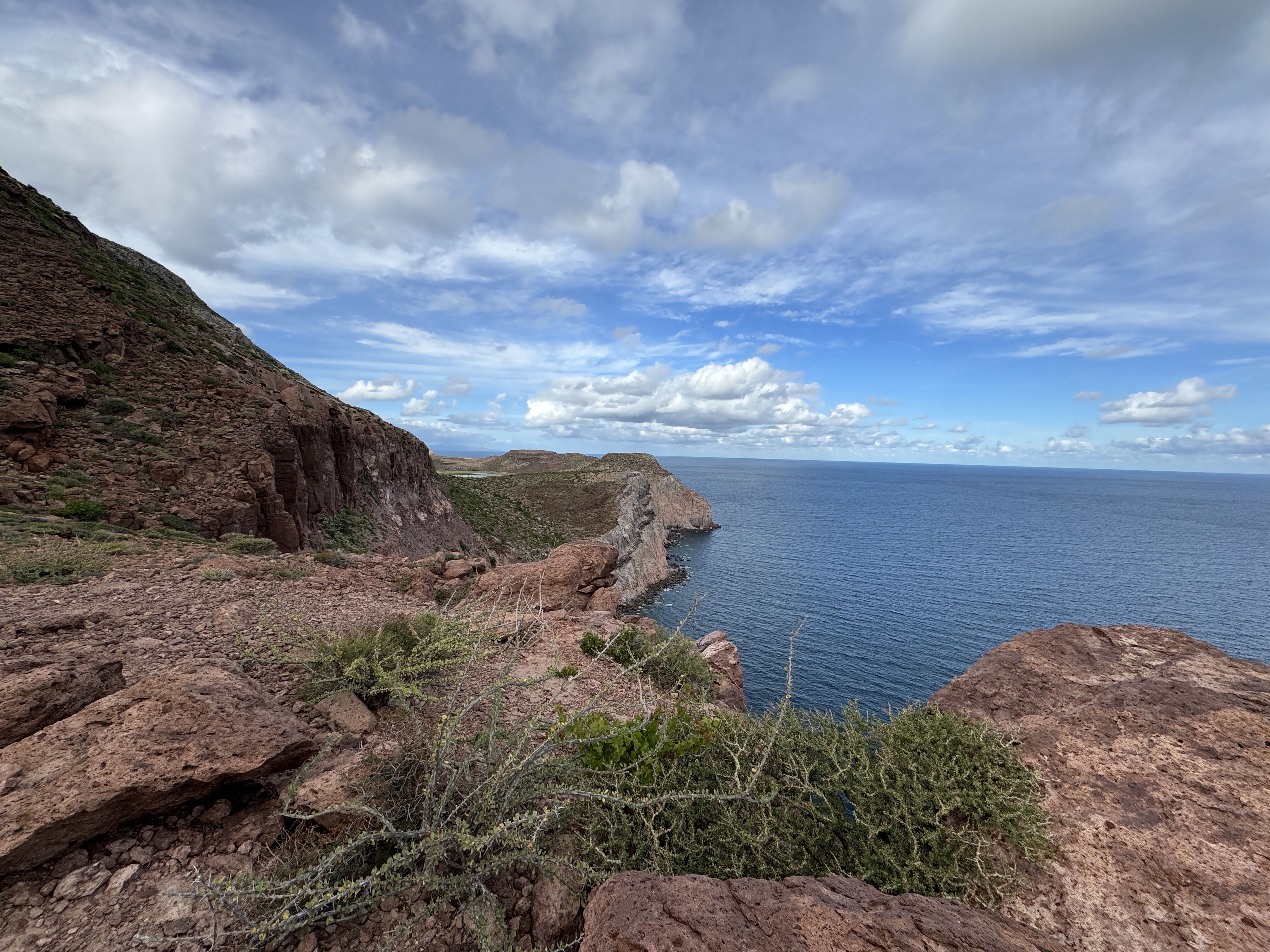 A variety of hikes allowed us to explore the area surrounding the beach. One group of adventurers navigated a series of game trails through the prickly desert scrub and up to a saddle between two of the mountains, where they enjoyed a view down the other side of the cape. Along the way, a scorpion, a jack rabbit, and a bighorn sheep were spotted on the hillside.