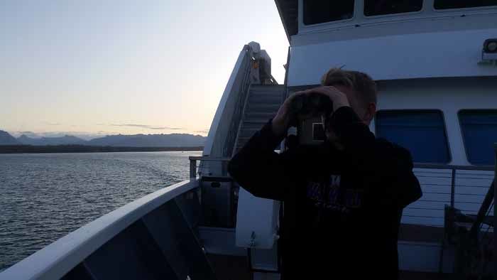 Early this morning, we cruised north through the stunningly beautiful Lynn Canal en route to Haines. Lynn Canal is a fjord almost 90 miles in length and 2,000 ft. deep—it’s the deepest fjord in North America. The incredibly steep walls and the deep water below are both great testament to the power of ice—glaciers about one-mile thick carved all of Southeast Alaska.