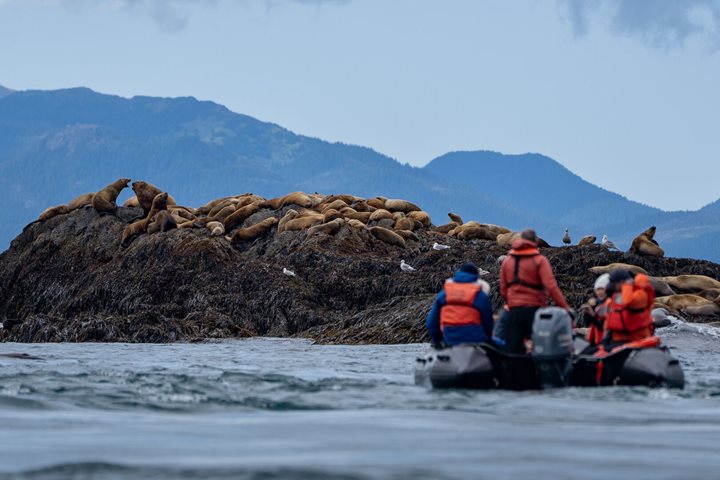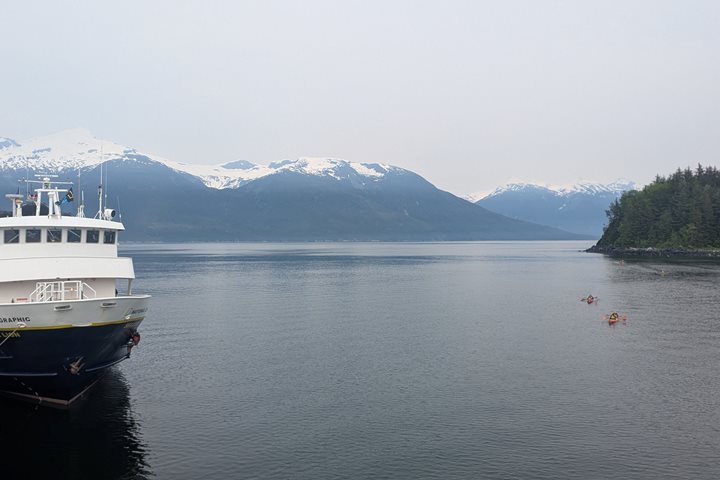 Today, we embarked on a voyage through the breathtaking Endicott Arm, a 30-mile fjord carved by ancient glaciers. As our vessel glided through the jade-green waters, towering granite cliffs rose on either side, with cascading waterfalls fed by melting snowfields. The fjord's serene beauty was punctuated by the occasional splash of harbor seals diving from ice bergs and the distant sight of mountain goats navigating the rugged terrain. Approaching the terminus of the fjord, the awe-inspiring Dawes Glacier came into view. Standing over 500 feet tall and half a mile wide, its icy facade shimmered in hues of blue and white. We boarded Zodiacs to get a closer look, maneuvering through a maze of icebergs, each uniquely sculpted by nature. Suddenly, a thunderous crack echoed as a massive chunk of ice calved from the glacier, crashing into the water below and sending ripples across the fjord—a humbling reminder of nature's power. The journey through Endicott Arm was more than a scenic cruise, it was an intimate encounter with the raw, dynamic forces that shape Alaska's wilderness. The memories of shimmering glaciers, playful seals, and towering cliffs will linger, a testament to the allure of this pristine frontier.