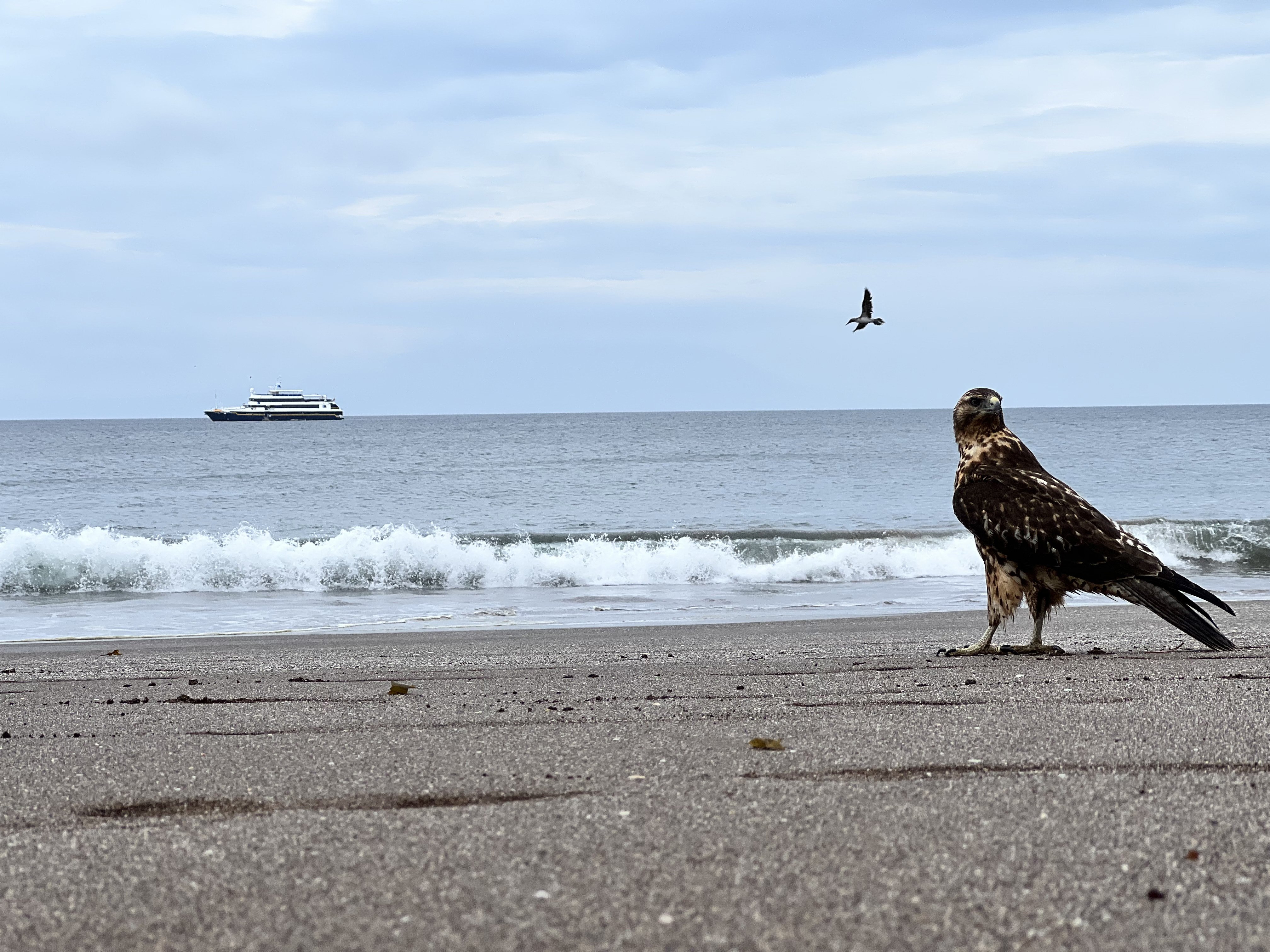 Can the weather get any better? March is mid-fall here, equivalent to October back home. It was still dark when we boarded buses for our full-day tour of southern Chile’s iconic Torres del Paine National Park. We drove north. A rosy glow at the skyline slowly transformed into golden light, casting slanted shadows as the sun rose over the hills to the east, illuminating the mountains in front of us. Some of us were on the panoramic tour, visiting key scenic lookouts and finishing at Rio Serrano for a traditional Patagonian asado, or barbecue. Whole lambs had been roasting over lenga wood fires all morning. The rest of us were on a slightly longer tour, with two lovely hikes breaking up the bus ride. (We still enjoyed the lamb barbecue!) We were blessed with blue skies, sunshine, and no wind, which is very unusual for southern Patagonia. Well, that is, until our second hike, up a high hill called Cerro Condor, where the wind was so strong that it was hard to walk…at times, even to stand! After our delicious barbecue, we headed back to National Geographic Explorer , where it was docked at Puerto Natales, ready to continue our adventure.