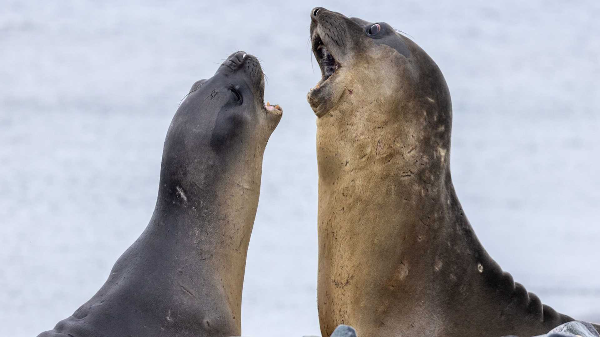 Following a late evening show by the killer whales of the Gerlache Strait, expectations were high for a final day of fun for our guests. A sunny morning greeted National Geographic Explorer as she sent her landing craft to Half Moon Island, where naturalist scouting parties found a great deal of excitement ashore. Gentoo and chinstrap penguins hopped along the rocky shores of the island, delighting all with their movements and cries. Our hikes meandered along the shoreline and concluded with a viewing of two subadult Southern elephant seals sparring on the beach.