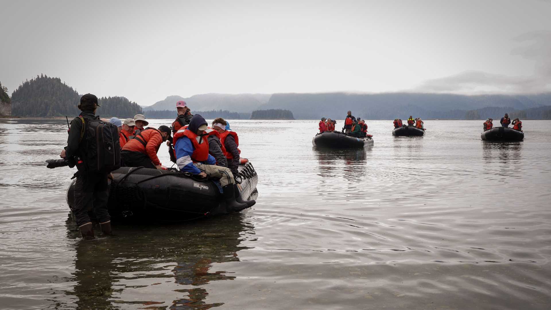 The bridge team of National Geographic Quest navigated Chatham Strait from the northern end of the inside passage to Kuiu Island. We made Halleck Harbor our home for the day, where guests enjoyed kayaking and “bushwacking,” our term for exploring the temperate rainforest off trail. That evening we sailed south looking for wildlife and we were rewarded! We saw dozens and dozens of humpback whales in every direction. We even got to see bubble-net feeding and many breaching individuals! What a fantastic and unforgettable day!