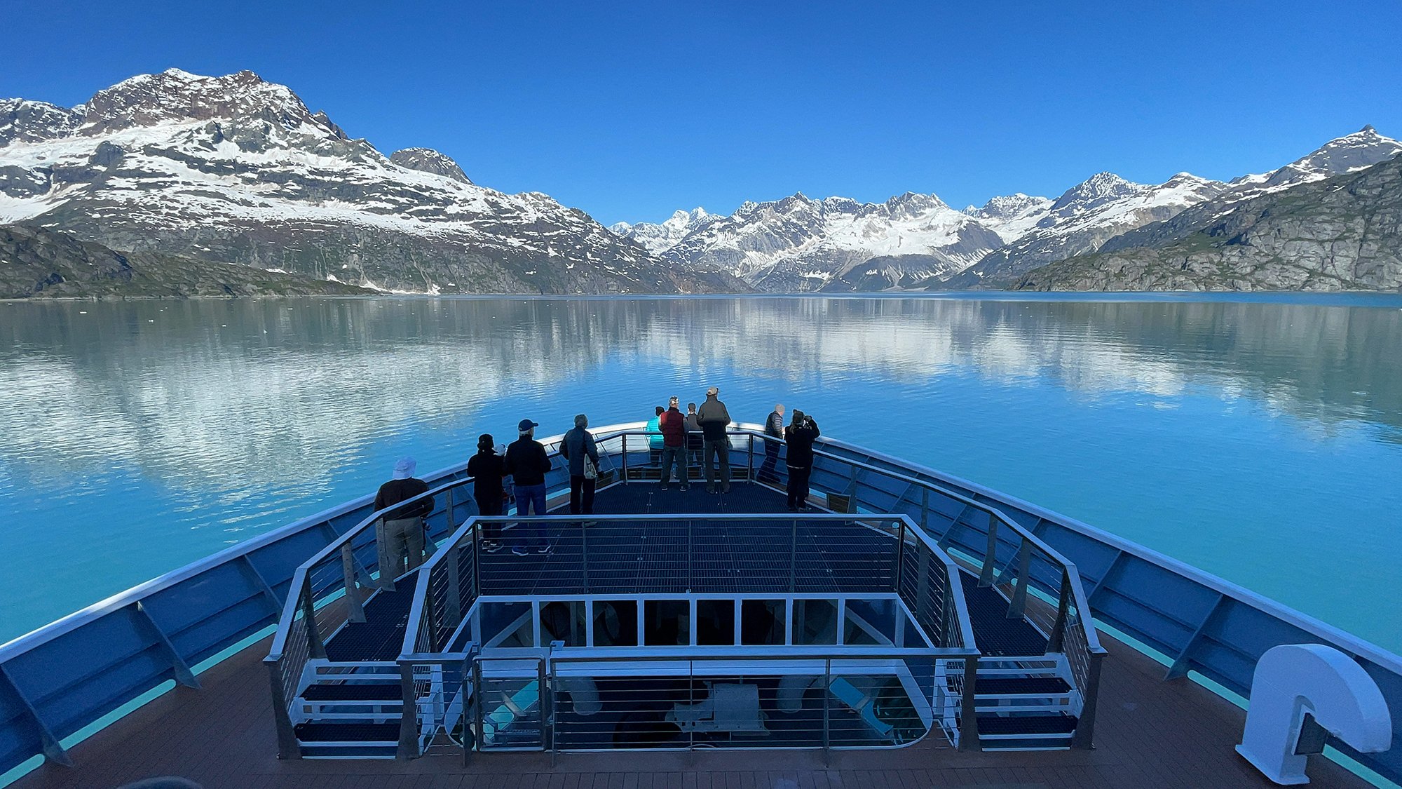 On the last full day of our voyage, we woke in Endicott Arm near the Dawes Glacier. We spent the morning enjoying Zodiac tours to the face of Dawes Glacier and watched multiple calving events. We were also able to spot several harbor seals, waterfalls, and a couple harbor porpoises on the way. After lunch we had the opportunity to participate in a polar plunge. Forty people decided to brave the frigid water for a short swim. Those of us not eager to jump into glacier water were able to watch from the bow. After the polar plunge, we warmed up on board as we started transiting towards Juneau. On the way, we stopped at a beautiful waterfall to once again admire the amazing natural beauty of Alaska. During our farewell recap, we were treated to a quick visit by a humpback whale. We ended our day with a slideshow made up of our favorite photos and memories of an amazing week on board National Geographic Quest .