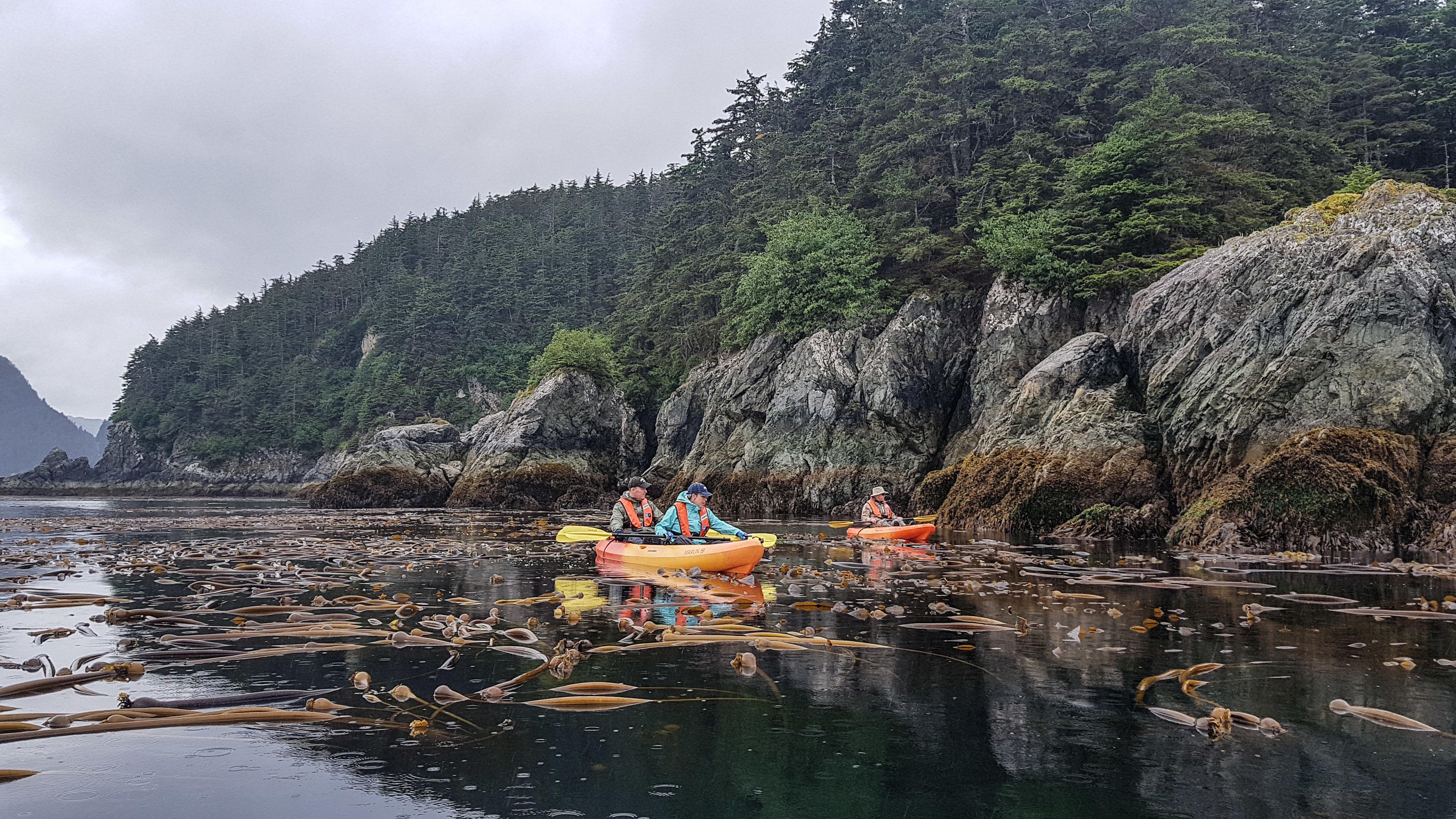 Finally we got our boots wet! After two days of Zodiac tours around glaciers and a lovely afternoon in Petersburg, today we got into the real wilderness of Southeast Alaska. Halleck Harbor on Kuiu Island was the destination for the morning. As we sailed Chatham Strait over the afternoon, undersea specialist Paolo Marra-Biggs taught us that every other breath we take is thanks to the ocean, and local researcher Dr. Andy Szabo told us about the amazing work the Alaska Whale Foundation is doing.