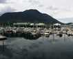 The remainder of the day was dedicated to searching for marine life as we motored north. Shortly after a talk about bears, we picked up a whale researcher, Dr. Andy Szabo from the Alaska Whale Foundation, and Courtney Hann, one of his graduate students. Andy shared his wealth of knowledge and presented slides about humpback natural history and behavior. Almost on cue, several spouts appeared just as Andy finished speaking. We gathered on deck and watched one whale after another surface. In sequence, they then arched with raised flukes to provide thrust for deeper dives. Eight tales showed patterns ranging from nearly white to almost black with variations in between. These marks are distinctive and can be used to identify individual animals in the same manner as fingerprints can be for humans. Andy interpreted the behavior of this group as we continued to watch. He said that they appeared to be searching for prey but not successfully locating anything. The tall, bushy spouts contrasted dramatically against the dark background of forest.
