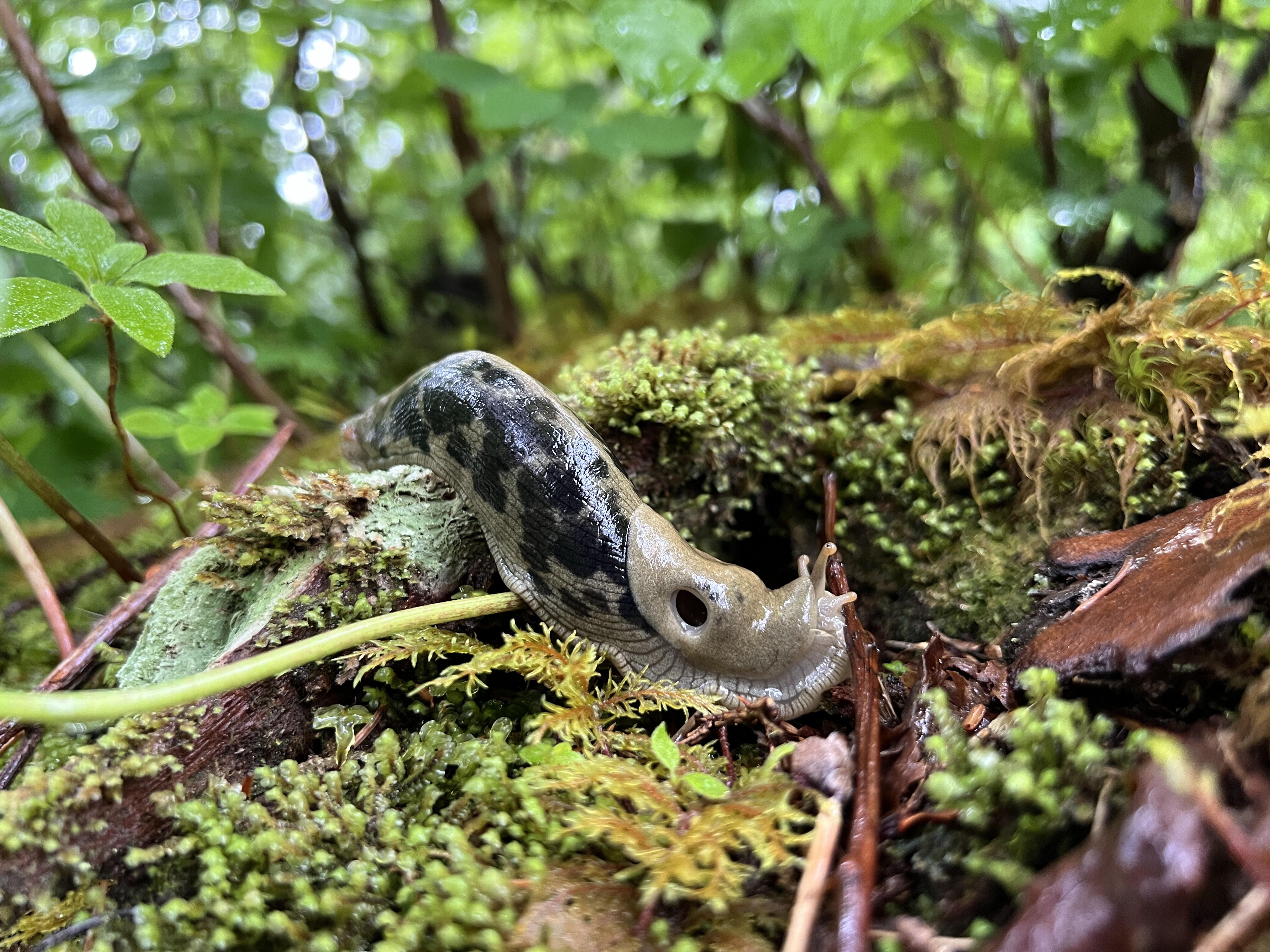 After breakfast, we dropped anchor in Hanus Bay to enjoy one last visit to this lush, green, moss-draped wilderness. Less than 100 yards up the trail, we found fresh bear scat containing plants that the local brown bears have been feeding on as they await the salmon. Huge banana slugs, the most charismatic of slugs, grazed upon the wet vegetation of the forest floor.