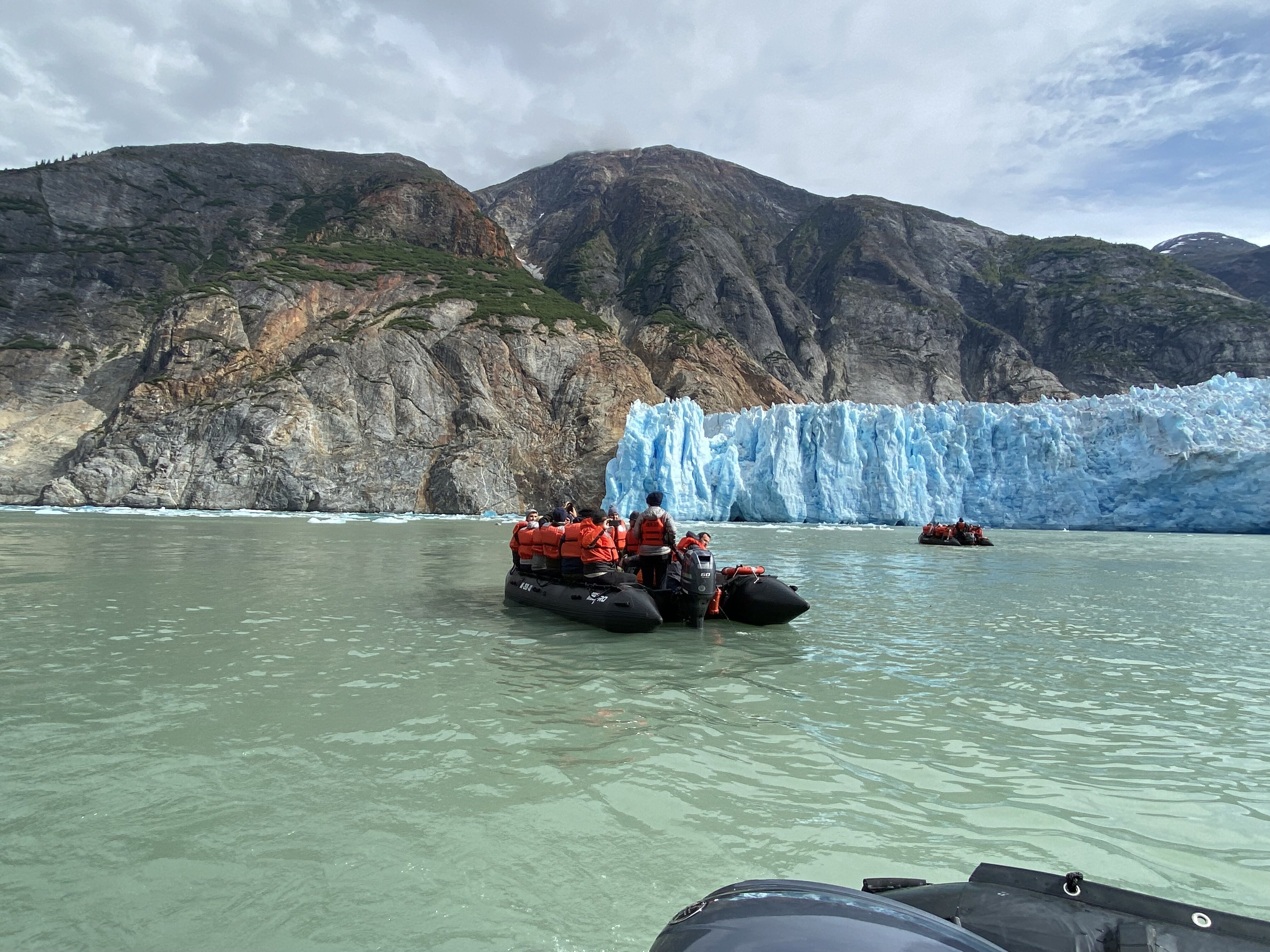 Afterwards we returned to the ship for lunch – CHILI DAY on board! Our afternoon activity was today’s showstopper. Expedition leader Oren took us to Pavlov’s Harbor — a VERY busy salmon stream with a lovely waterfall and salmon fish ladder — in hopes of spotting more bears. And we were in luck, as we observed seven different coastal brown bears over a two hour period. Two sow and cub groups, a pair of older cubs, and a solo adult. It rained off and on all day, just as a Southeast Alaska summer day should be. Another perfect day on board. Huge thank you to our bridge team and expedition leader for a magnificent first day!