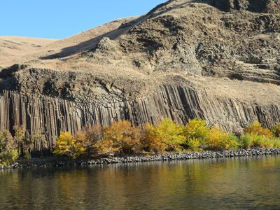 We began our journey on the Snake and Columbia Rivers by jet-boating up the Snake River into Hells Canyon, and what a way to begin this adventure! In clear weather and with high spirits, we made our way into not only the deepest, but also one of the most rugged, scenic, and remote, river-carved canyons in North America—Hells Canyon. The origin of the name “Hells Canyon” is a bit of a mystery, but it could refer to the hellishly high temperatures that turn Hells Canyon into a furnace in summer. Our jet boats roared along, swerving around rocks and through rapids, into the heart of the canyon. Rocks, rugged and steep, loomed above us on either side. Along the way, we saw mule deer and Rocky Mountain bighorn sheep and had many sightings of eagles, other raptors, and waterfowl.