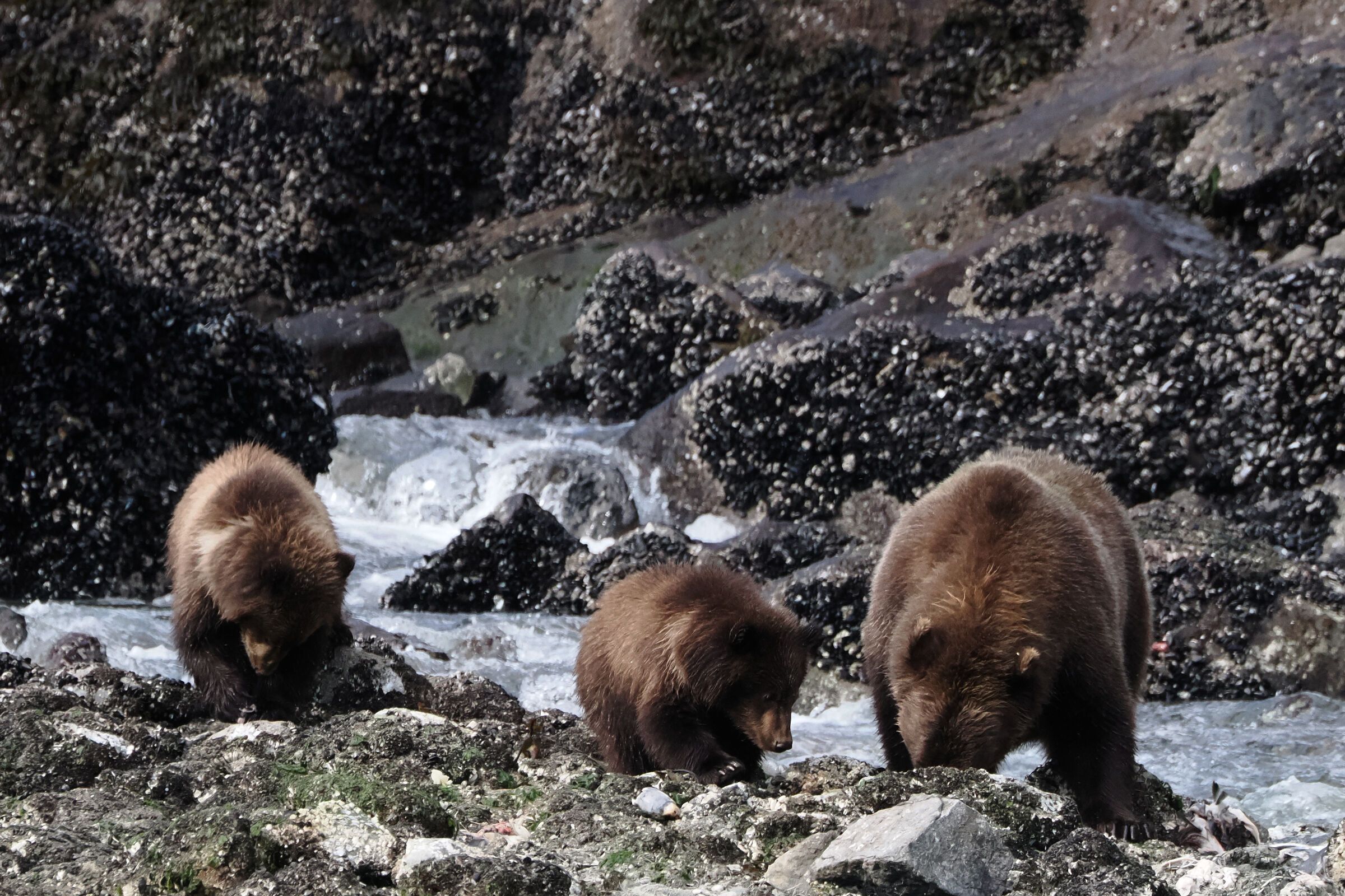 We set out on our Zodiacs to visit the Hidden Falls Hatchery. This productive facility is responsible for releasing over 50 million juvenile salmon each year, giving them a head start in a challenging world. With a return rate of over 3%, these salmon provide food and livelihood to people and wildlife throughout the region. Lucky for us the salmon were returning during our visit, and the bears were there to meet them. We watched over a dozen brown bears hunting this seasonal boon by the falls. Mothers taught their cubs how to fish, and large adults effortlessly picked fish from the water.