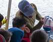 Before breakfast, we reached loose pack ice and an announcement was made informing everyone of walruses sighted on an ice floe. That was a great start in the morning, but before long we had our first polar bear of the day…then another…and another. Conditions could not have been better with partly cloudy skies, glass-smooth water with beautiful reflections, brilliant ice floes, and bears! Lots of bears. At one point in time, we could see nine bears scattered about, including a mother and cub, two swimming bears, and one on a seal kill. It would be hard to imagine the number of digital images produced this day. Every time we pulled away from a bear, we soon sighted another one doing something equally interesting. It was astounding to have two separate bears both approach the ship on ice floes one right after the other in mid-morning. Another one actually slid into the water off its floe and swam over to investigate the ship. Everyone found his or her favorite spot on the ship from which to sight and photograph bears…many were on the foredeck, some liked the outside vantage from in front of the chart room (just below the bridge), quite a few were in the bridge itself, and a bunch of us went for the higher view from the sundeck (right above the bridge).