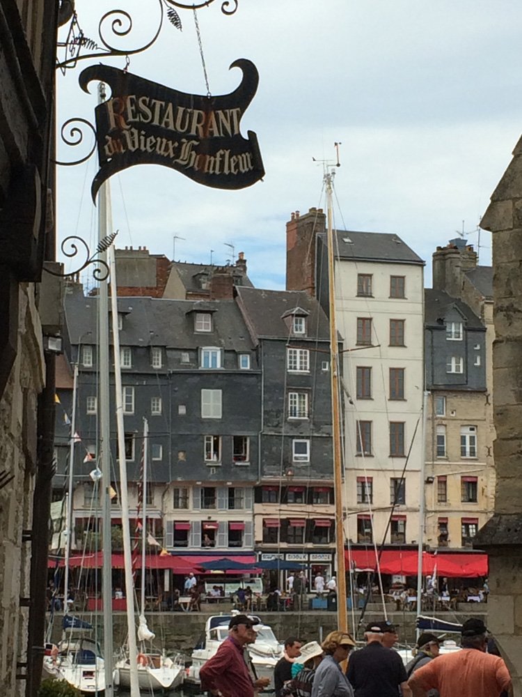 Thus prepared to eat, we repaired to our on board restaurant for a lovely lunch before hopping on shuttles to begin our explorations of France. National Geographic Orion docked for the afternoon at Honfleur, on the Seine estuary. This picturesque and ancient port town and its environs were a favorite among Impressionist artists, including Monet, Corbet, and Boudin. On such a warm and sunny day, it was easy to see the inspiration these painters took from the area, especially for those who joined the hiking excursion to Étretat, with its high cliffs and incredible views over natural stone arches, carved over time by wind and waves. Equally inspiring was the town of Honfleur, for those of us who took the excellent walking tours there. We had the treat of visiting the Musée Eugène Boudin, whose current exhibition, “Etre jeune au temps des impressionnistes, 1860-1920” (“To be young in the time of the impressionists”), showcased many of the incomparable works of the artists who took inspiration here. Some, of course, took the chance to create their own artistic renditions of the area, and joined National Geographic photographer Gianluca Colla and photo instructor David Cothran for a photo walk in town.