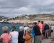 We proceed on into the lock at Bonneville Dam. Our sailors expertly throw a line over a floating bollard on our starboard side and this keeps our ship fast to the side of the lock as the great barn-door gate closes behind us and the lock begins to fill with water. The water flows in and the ship begins to rise in the lock. Meanwhile, we are gathered on the bow and we sing a rousing version of Roll On, Columbia Roll On, led by our expedition leader, Rab. Soon the water in the lock is at the level of the lake behind the dam, and the sailors take off the line and we sail forth 90 feet higher than before. Our sharp-eyed staff member, Jeff, spots a California sea lion bull; this animal has also come upriver through the lock.