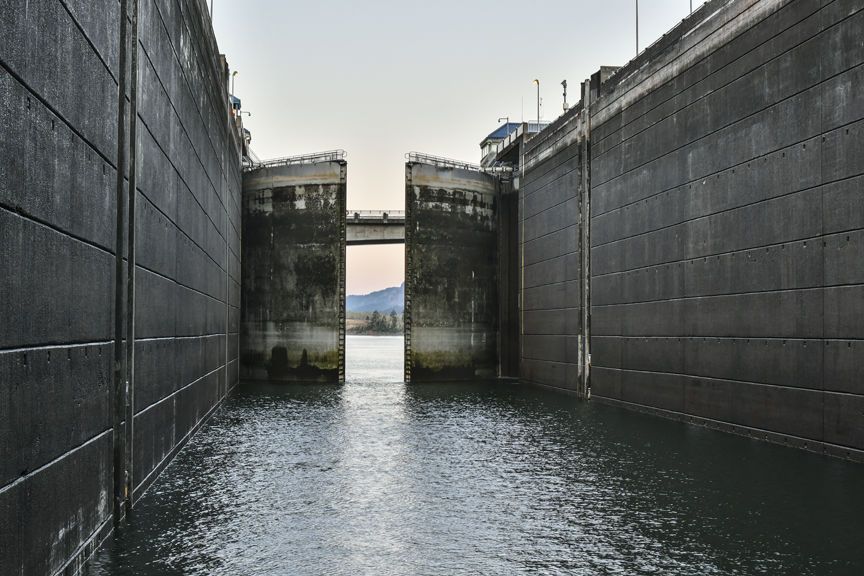Unseasonably warm and dry weather continued to grace us as we proceeded with our expedition down the Columbia River. The morning was crisp as we disembarked in Hood River, Oregon, but quickly warmed up as we boarded our coaches. Our explorations began at Multnomah Falls, the number one tourist attraction in the state of Oregon. After we experienced this astounding cascade, some of our guests proceeded to Beacon Rock for a scenic climb up this 800-foot tall, aged lava plug. Others went to the Bonneville Fish Hatchery where we visited a local icon, Herman the sturgeon. Then both groups of explorers met at the Columbia Gorge Interpretative Center for Syncline wines and an overflowing helping of intriguing local history. As the superb weather continued, we voyaged back to National Geographic Sea Bird for a lovely afternoon of classic cruising down the Columbia River. Guests enjoyed the sun on deck or an engaging presentation on how climate change is affecting migratory birds. Complimentary water-level views of Multnomah Falls followed, and our last transit through a lock of this trip – a lovely passage through the Bonneville Lock and Dam. Photos by Doug Crispin and Alex Rubenstein