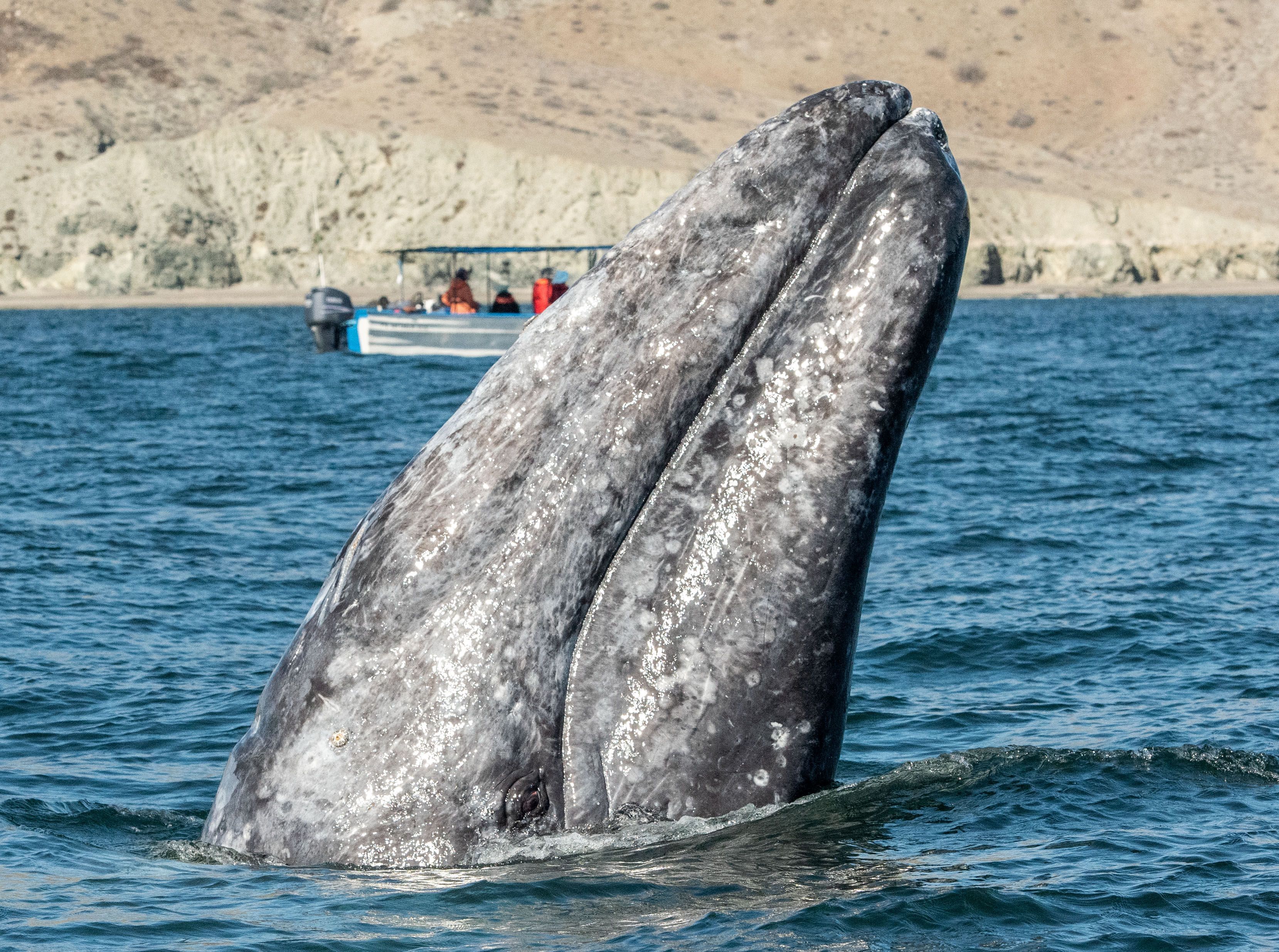 The afternoon activities were by sea, via Zodiacs. Humpback whale sightings were numerous throughout the day. They did not disappoint from the small boats either, breaching in the distance, lunging for food, and surfacing quite near our boats.