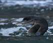 Later in the afternoon we explored the Inian Islands by boat. The Inians are a small archipelago standing right in the middle of Cross Sound and Icy Strait, so the tidal currents that flow among the islands are particularly fierce. But while potentially dangerous, they stir the ocean into a savory broth of astonishing fecundity. It was impressive to see channels flowing like swift rivers, with rapids and swirling eddies. These “rivers” carry salmon and other fish that lure in many a spectacular predator. We saw eagles galore, studding the forest or wheeling over the waves. Sea otters were abundant, sleeping placidly in kelp mats or plunging busily in search of crabs and urchins. But most spectacular were the sea lions. Steller sea lions are the biggest in the world, males sometimes weighing more than a ton. Sea lions sprawled in writhing piles on the rocks, or slumbered in solitary splendor. Others dove for fish, and sometimes we saw them lashing fish to pieces at the surface. Some approached our boats, daring each other to get a little closer. Impressive and entertaining, these creatures are suited to the extraordinary landscape they inhabit.
