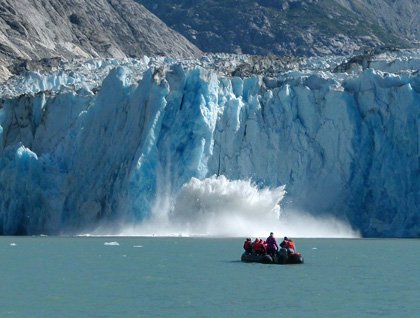 After lunch we docked in Petersburg, a small fishing town of Norwegian heritage, where we had the opportunity to take part in a variety of activities. On the dock we meandered beside fishing boats and learned about the commercial fishing industry of Southeast. Walks to a nearby bog highlighted carnivorous plants, an eagle’s nest and the unique ecosystem of Southeast’s muskegs. A strenuous steep hike up the Petersburg Mountain Trail saw bright orange “chicken of the woods” (fungus), porcupine gnaw marks, and notches cut in the sides of very old stumps where “springboards” once held loggers using axes and crosscut saws. We also had a chance to wander around Petersburg, bicycle, and visit local shops. In the distance the Devil’s Thumb, a massive jagged tooth of rock, rose into blue skies.