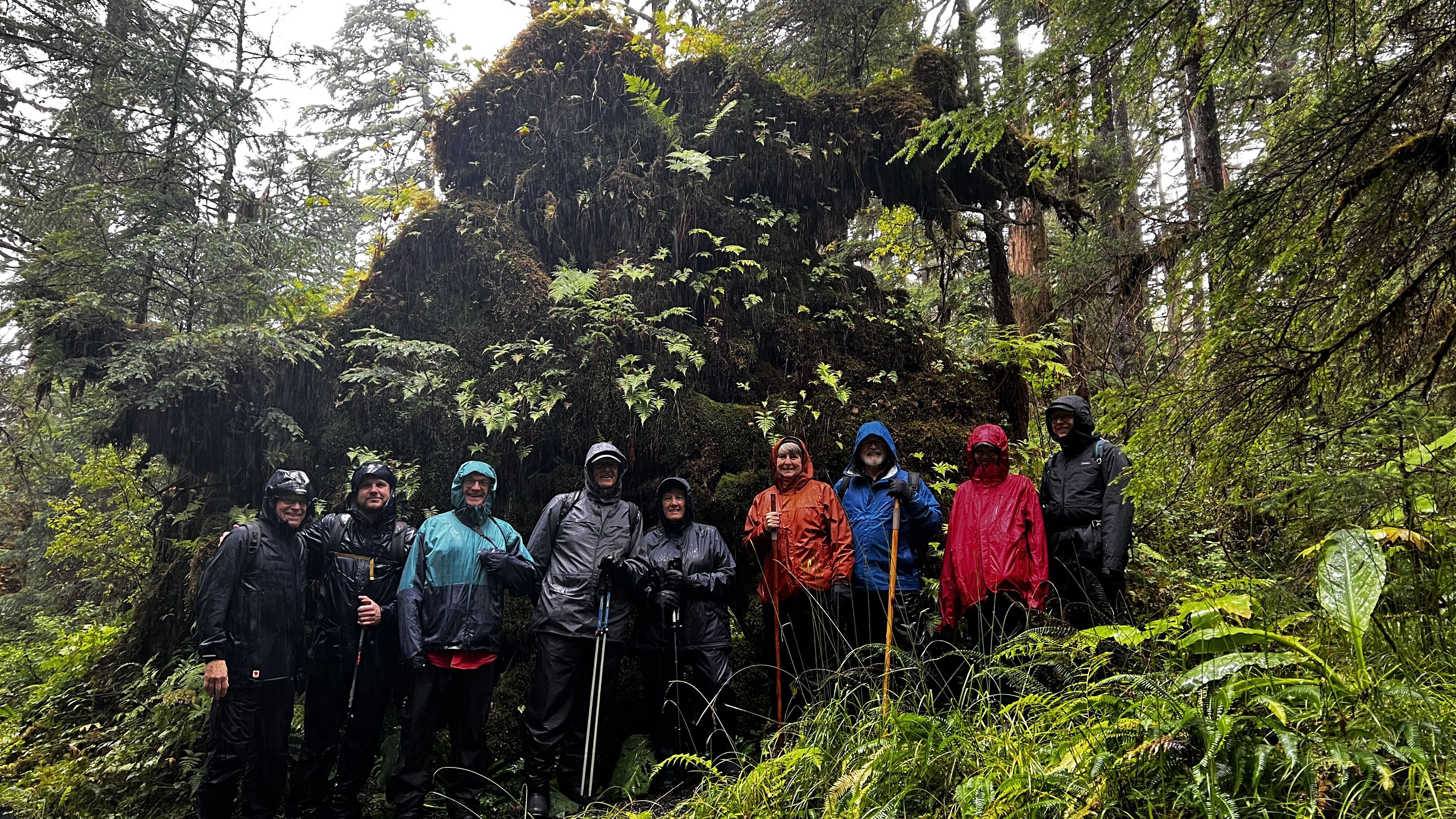 An authentic Alaskan experience includes rain; today, we had an authentic experience for twenty-four hours straight. Our morning hikes took us through a stunning temperate rainforest, made possible by the liquid sunshine that characterizes this region. Everything dripped, and waterfalls increased in volume by the hour. The afternoon included a watercolor session led by Kimberly Wood, and a presentation on whales by Erica Wirth. Five intrepid guests signed up for a Zodiac tour in the continuous downpour, and their bravery was rewarded — they saw at least fifteen bald eagles, nosed up a creek, waved to curious harbor seals, and viewed National Geographic Sea Lion amidst literal mist. Rain creates this place, and today we soaked up that reality.