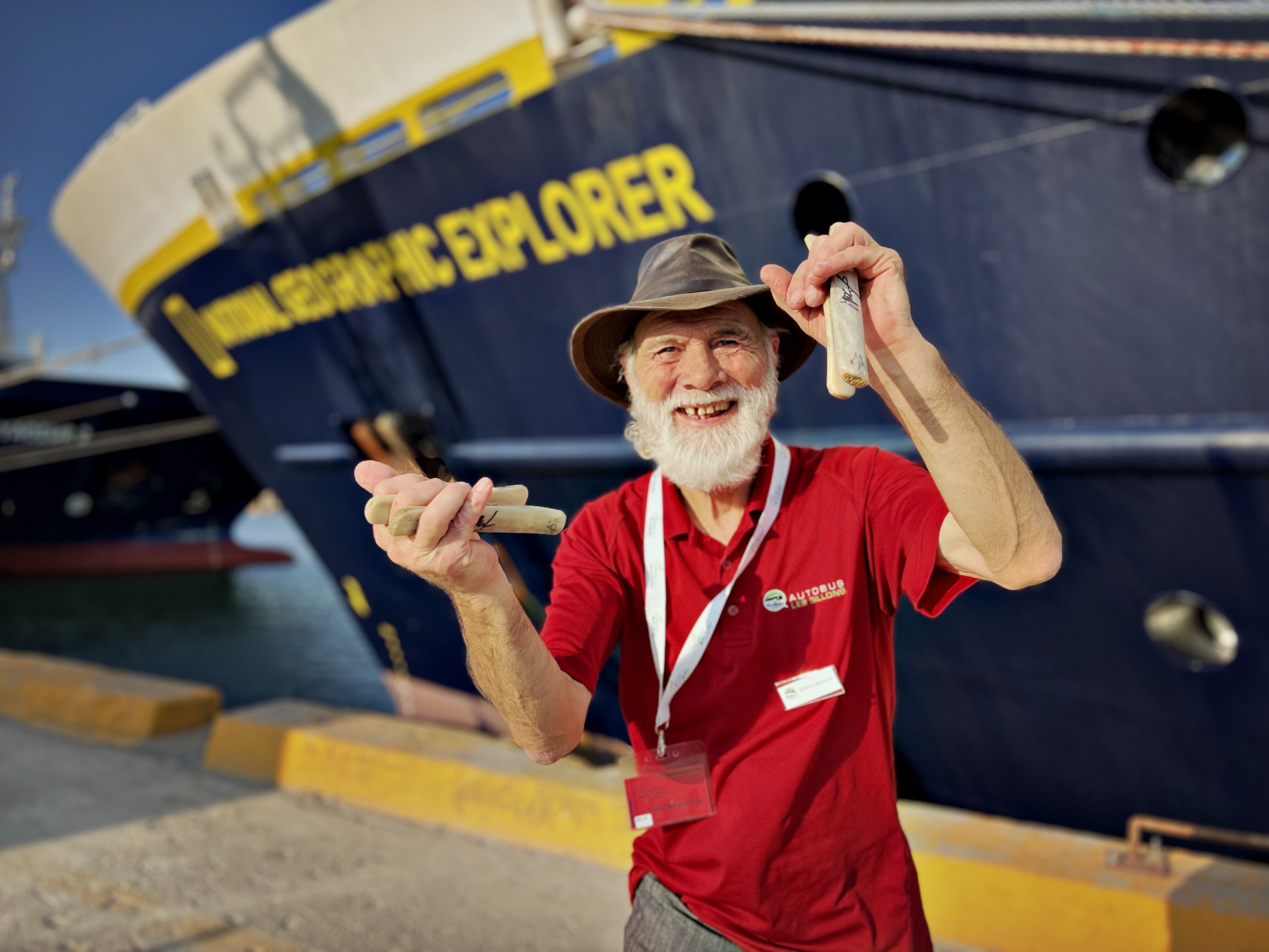 We were treated to some foot-stomping Acadian tunes played by talented local musicians Gilles Lapierre and Evan Martinet. Lapierre, who was also our tour guide for the day, is a masterful singer, storyteller, and player of the knucklebones, a percussion instrument made of beef rib bones that is used in a variety of folk music traditions. He and Martinet, the finest fiddler on the island, filled the ship’s lounge with joyful energy and toe-tapping rhythms.